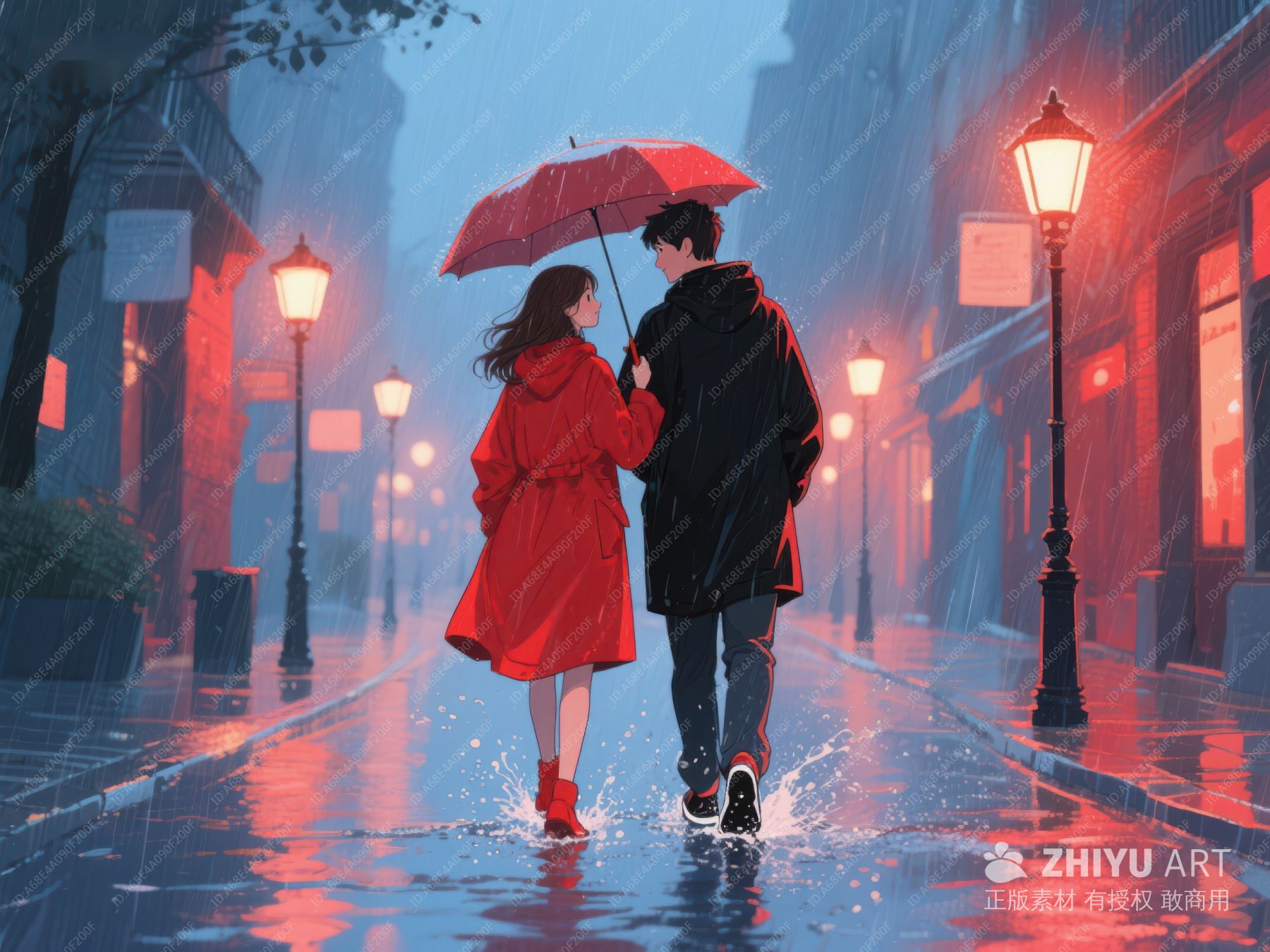 雨中情侣共撑伞,浪漫街头瞬间 1164