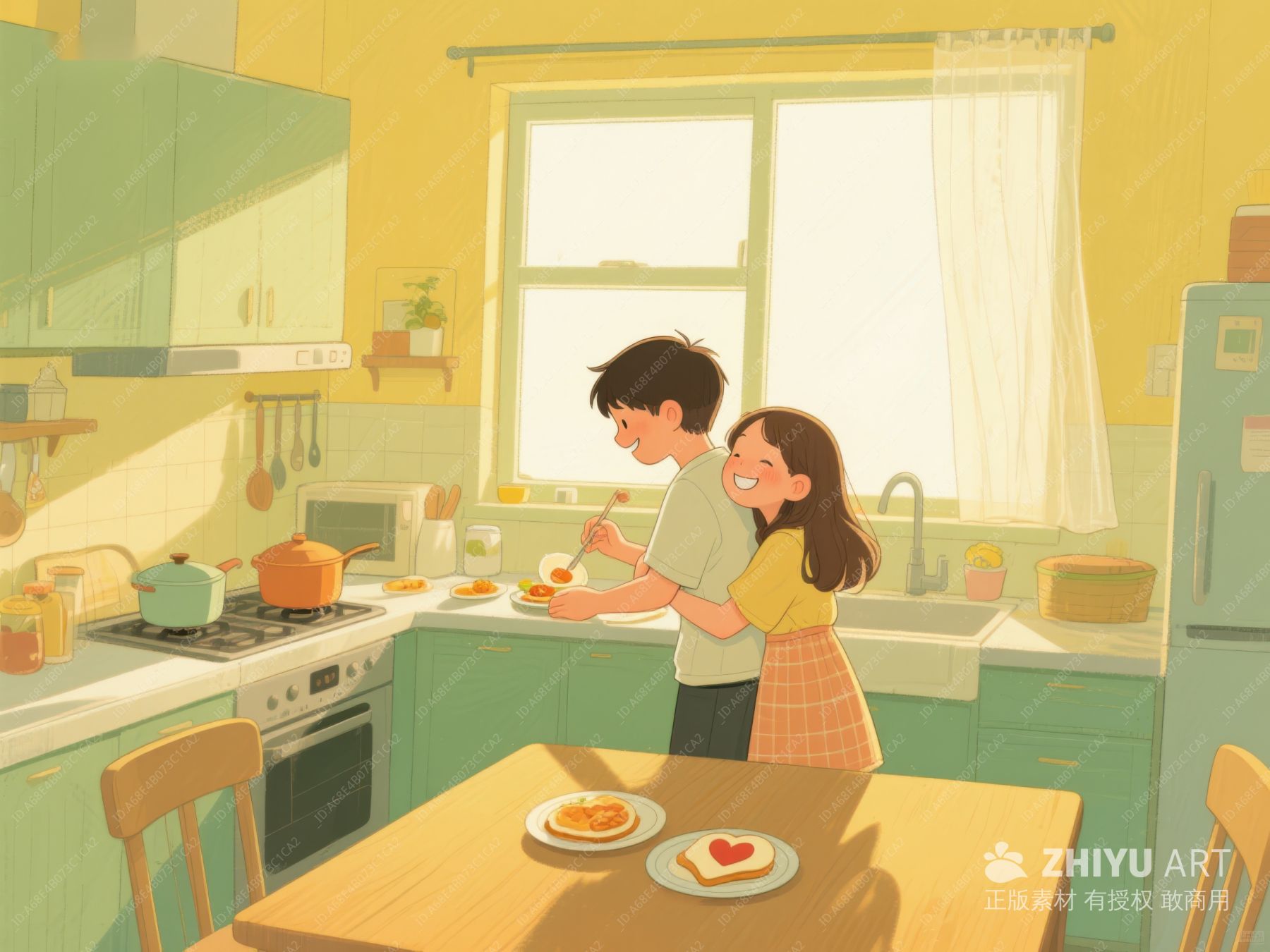 厨房温馨时刻:拥抱与早餐 41