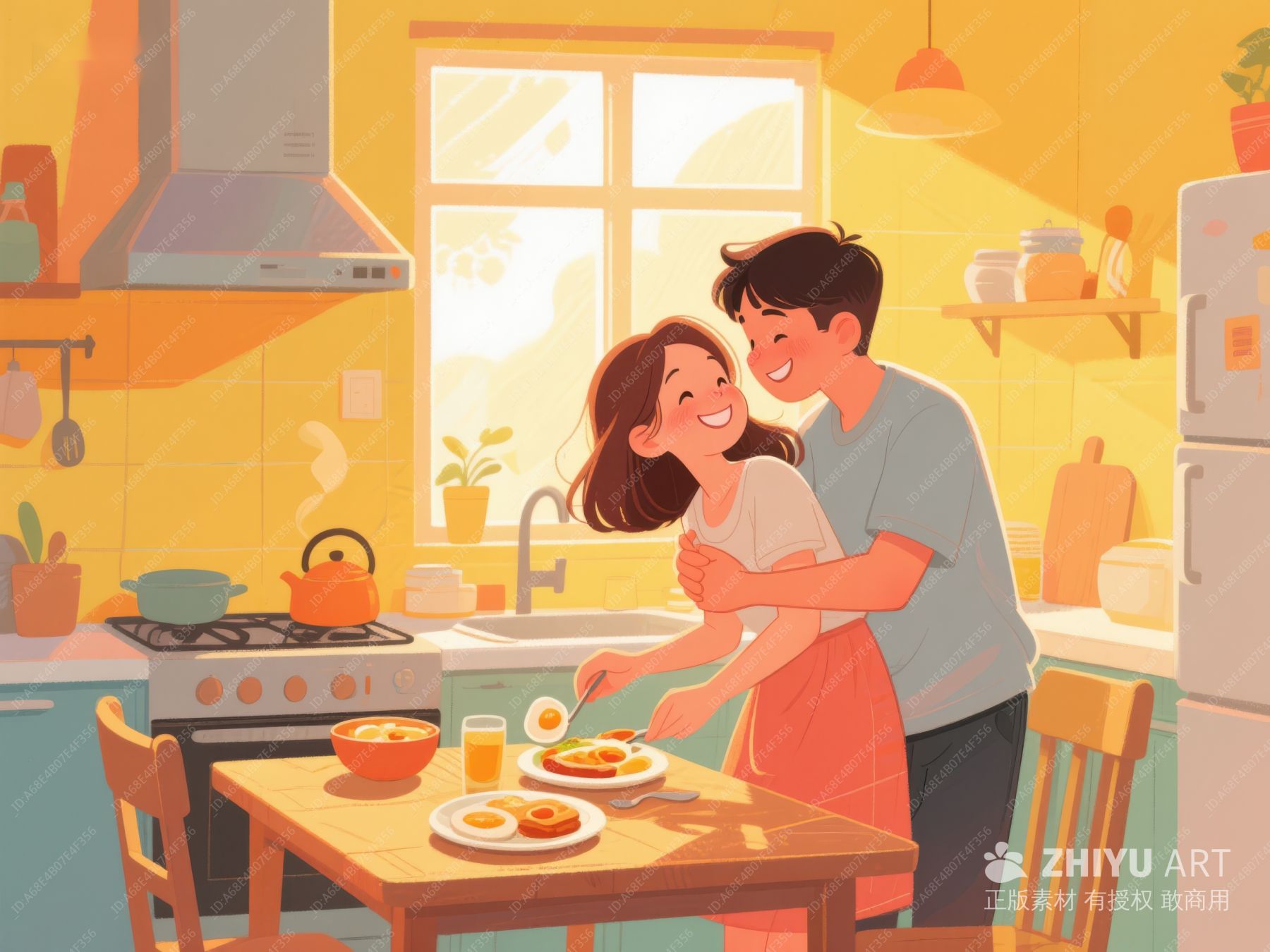 厨房温馨时刻:拥抱与早餐 41