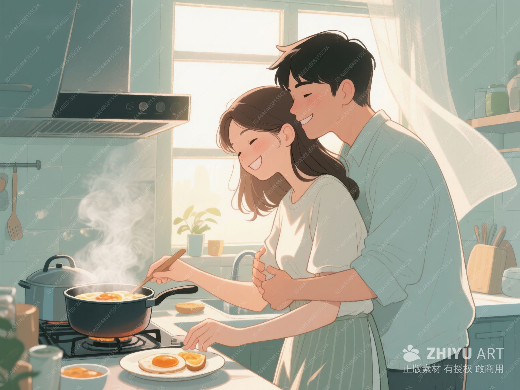 厨房温馨时刻:情侣共煮早餐 68