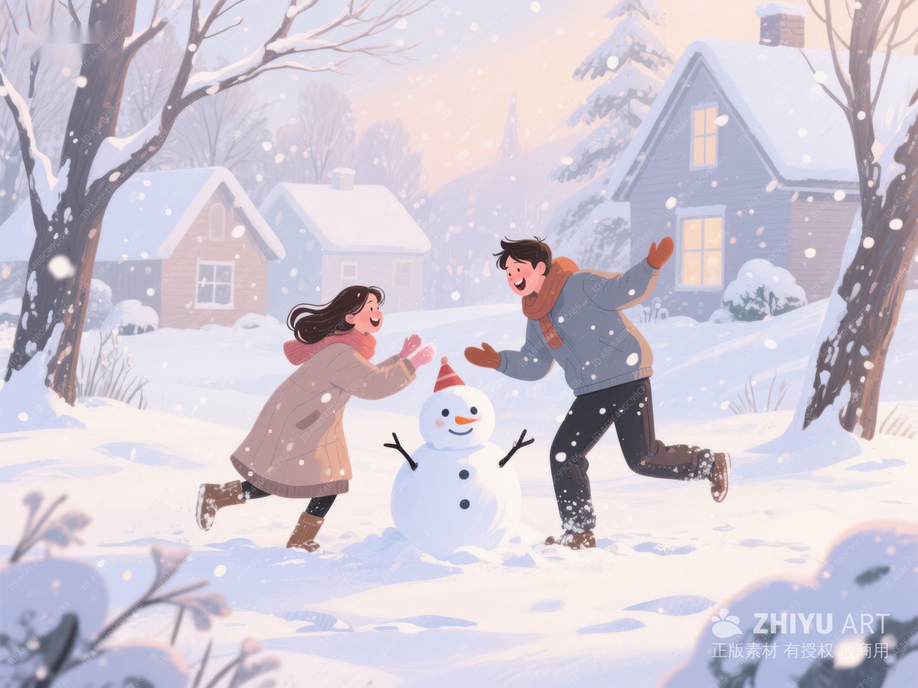 冬日雪地,情侣共筑雪人 85