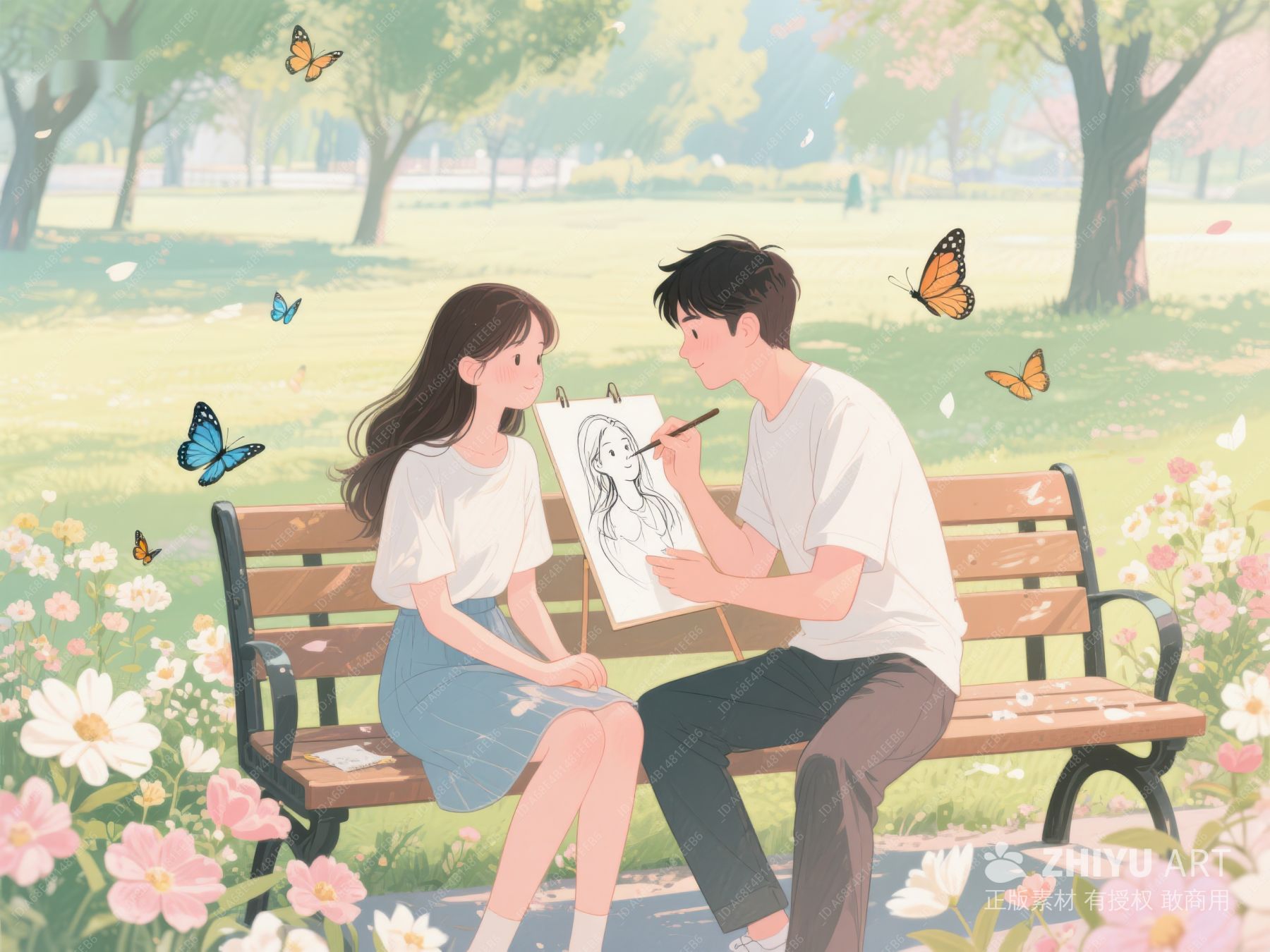 公园长椅上的情侣绘画时光 169
