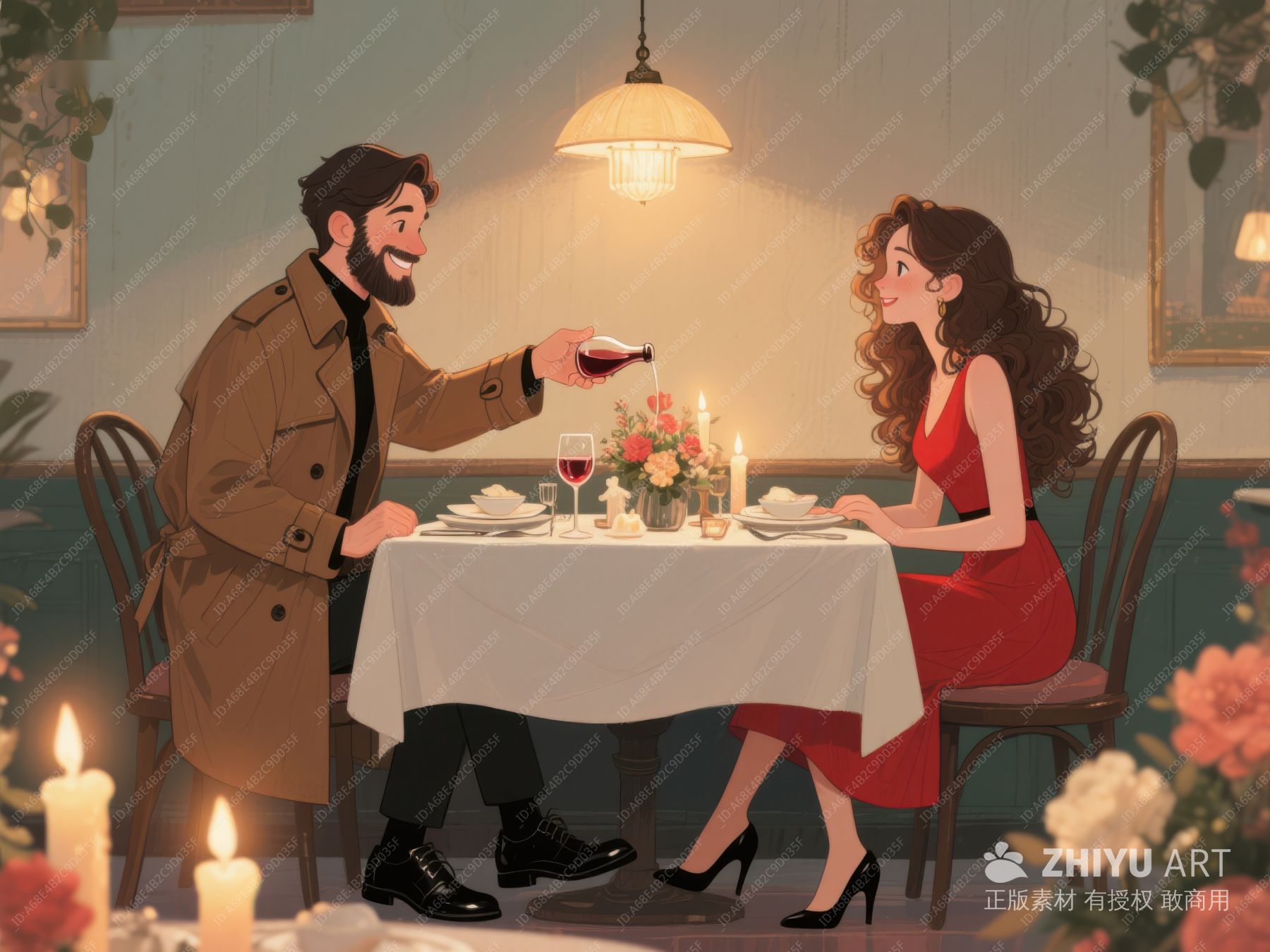 浪漫晚餐:情侣在餐厅共享温馨时光 425