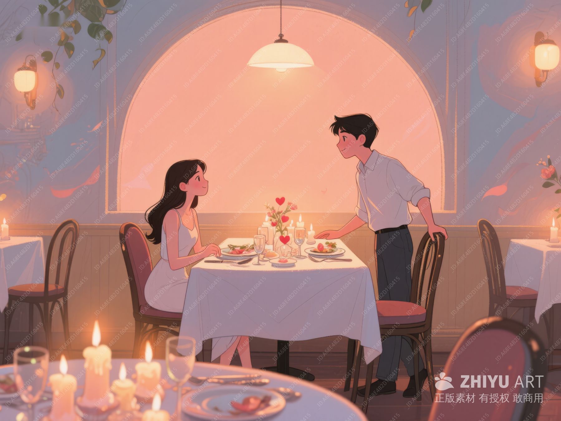 浪漫晚餐:情侣在餐厅共度温馨时光 437
