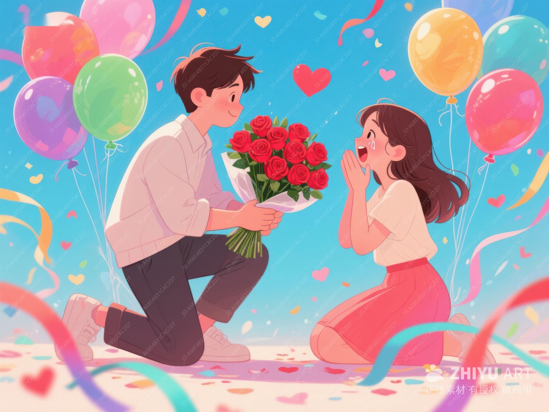 情侣跪地求婚,玫瑰花见证浪漫时刻 498