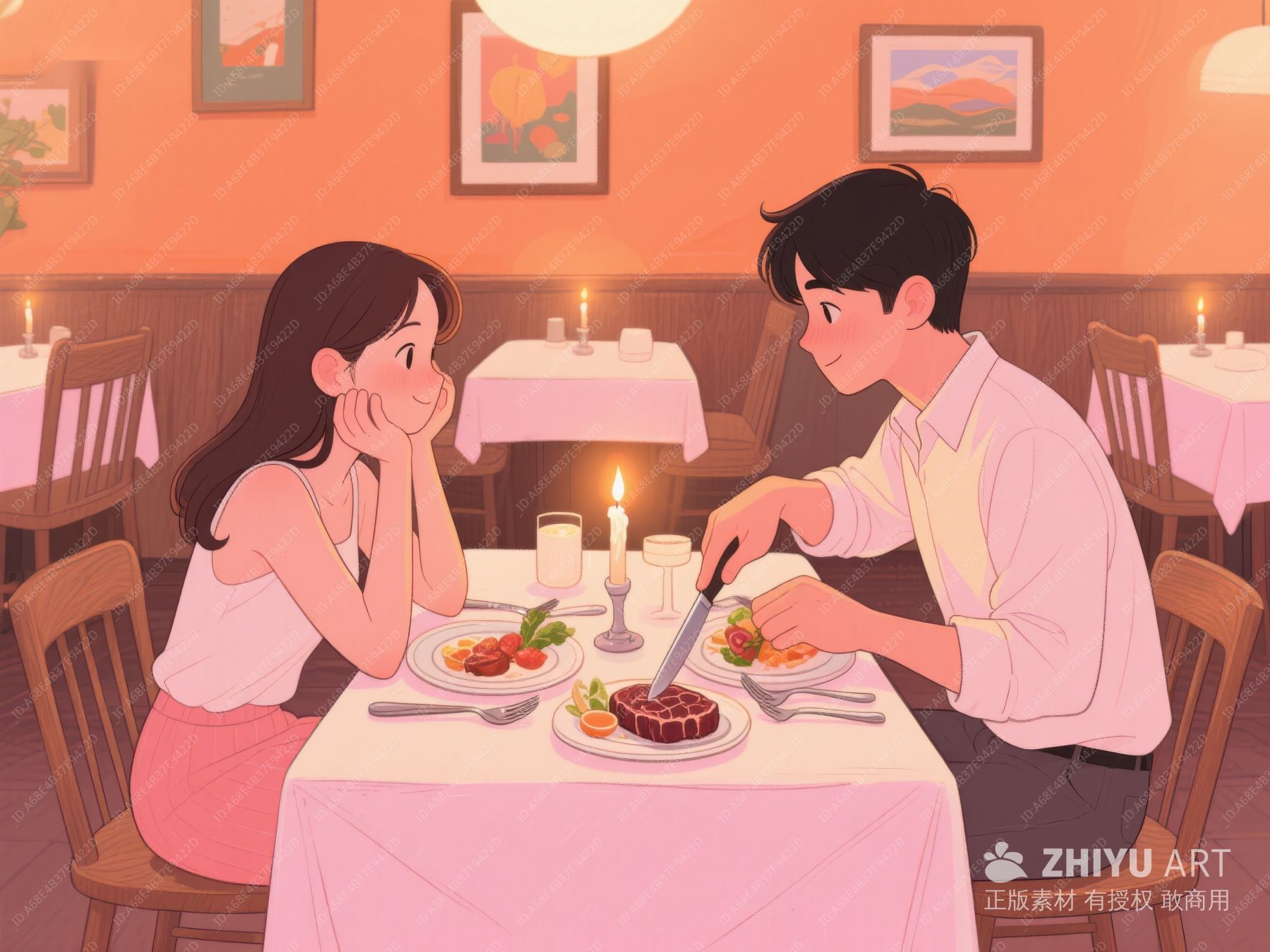 情侣在餐厅享用晚餐 545