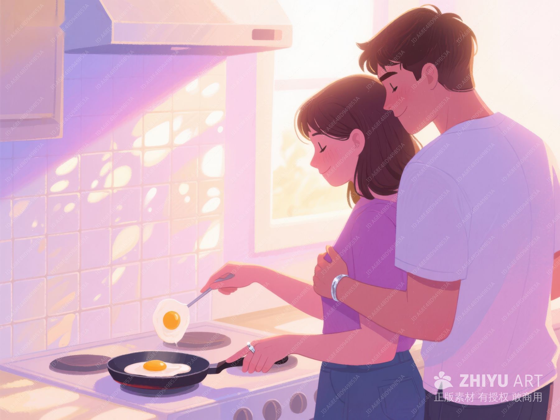 厨房温馨时刻:情侣共同烹饪早餐 59