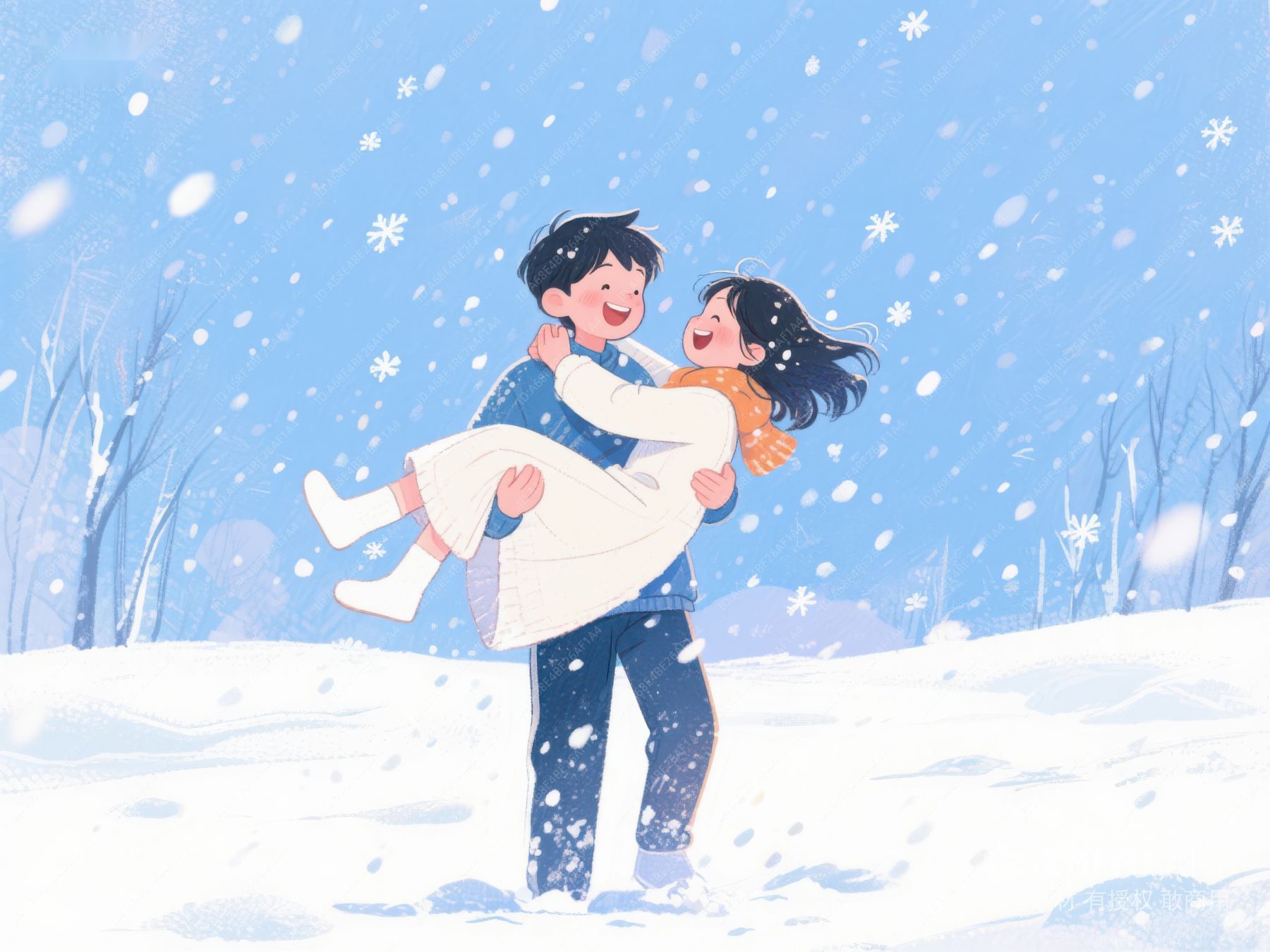 冬日雪景中相拥的恋人 107
