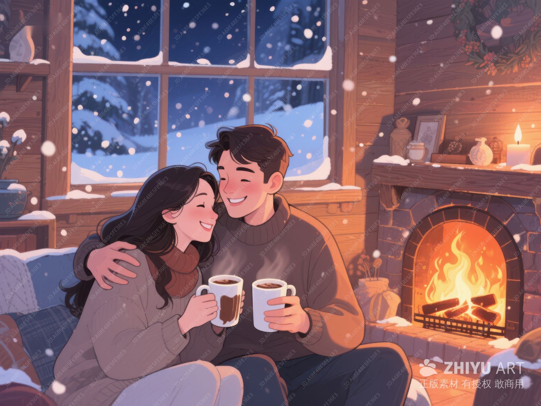 冬夜温馨时刻:情侣共饮热茶 185