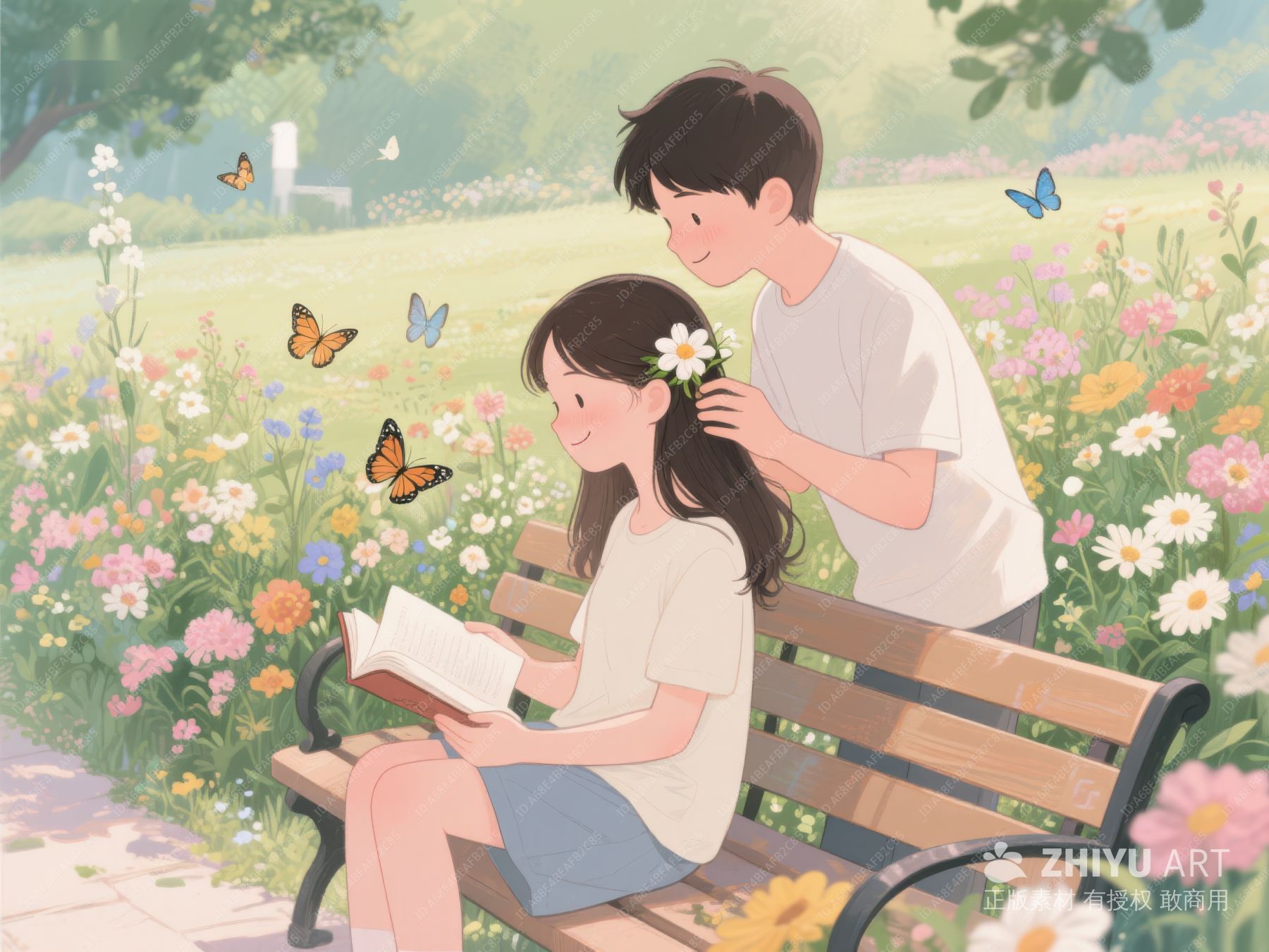 公园长椅上阅读的温馨情侣 203