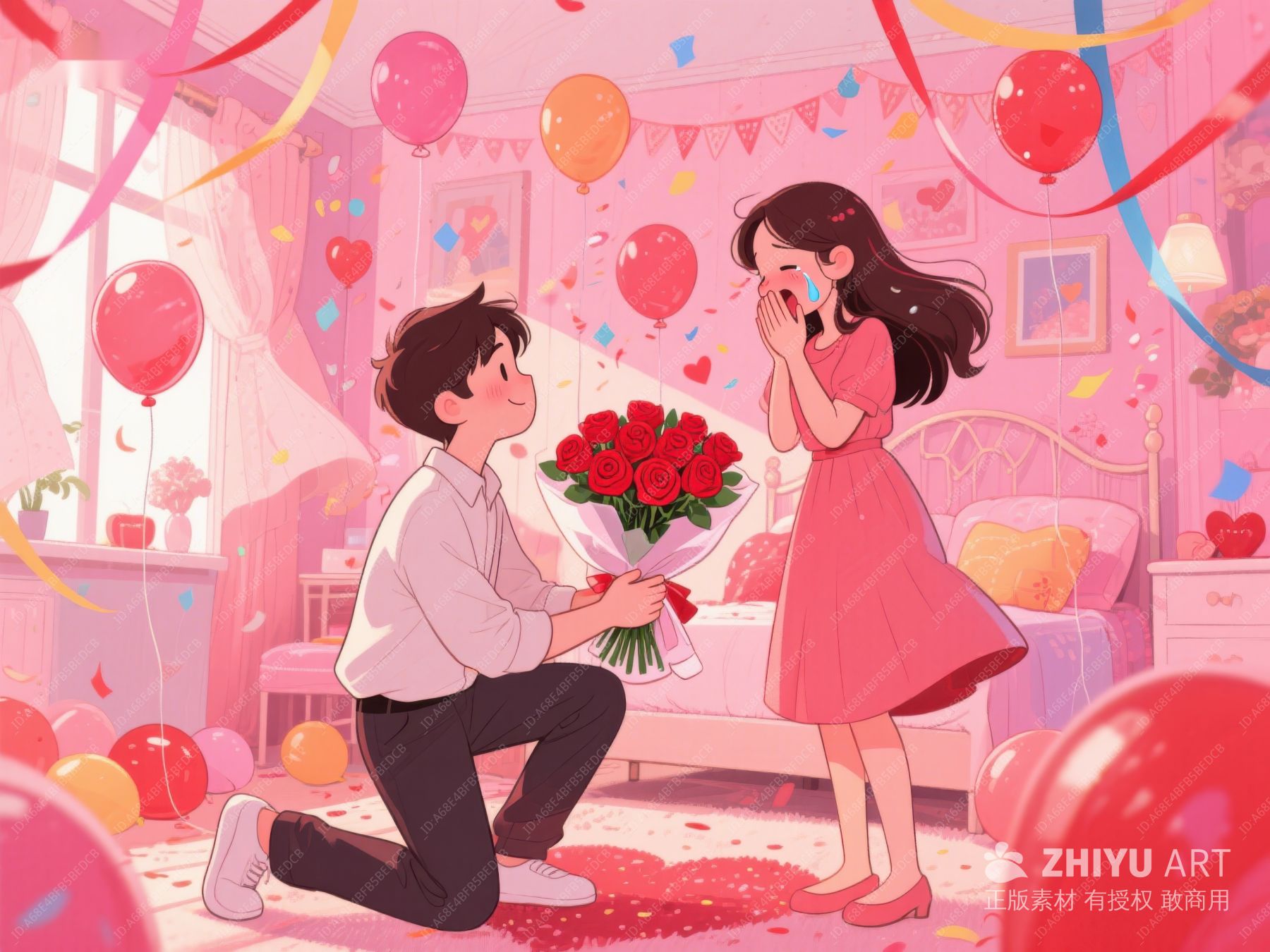 浪漫求婚场景,男子单膝跪地献戒指 412