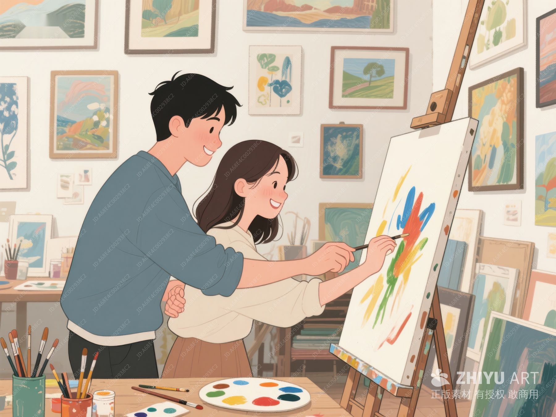情侣共同创作画作,温馨场景 256
