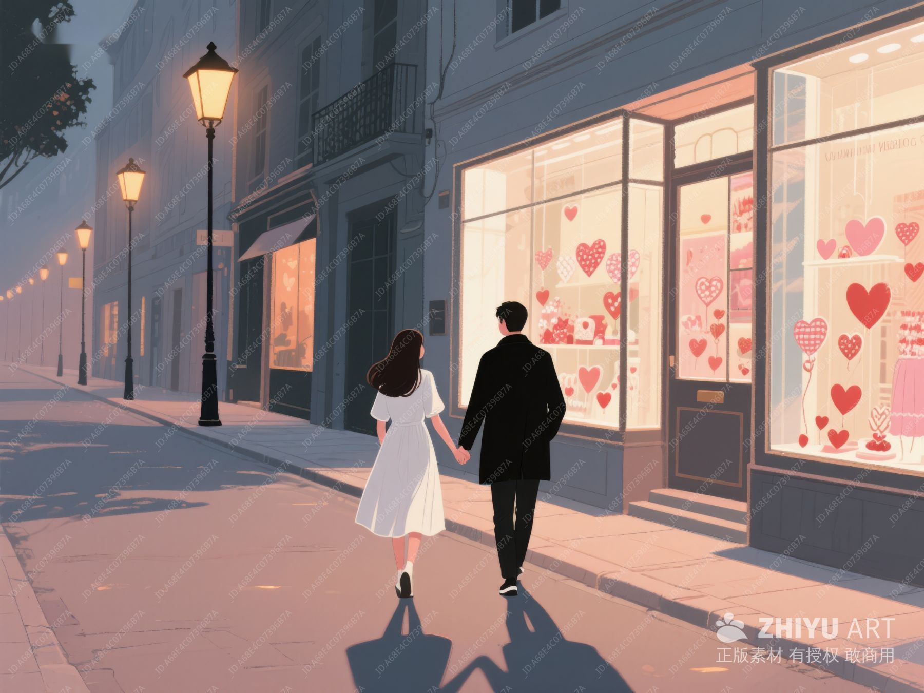 情侣夜行,街灯下的浪漫橱窗 540
