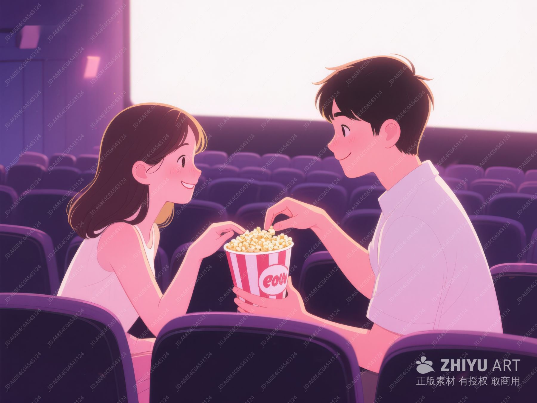情侣在电影院共享爆米花 571