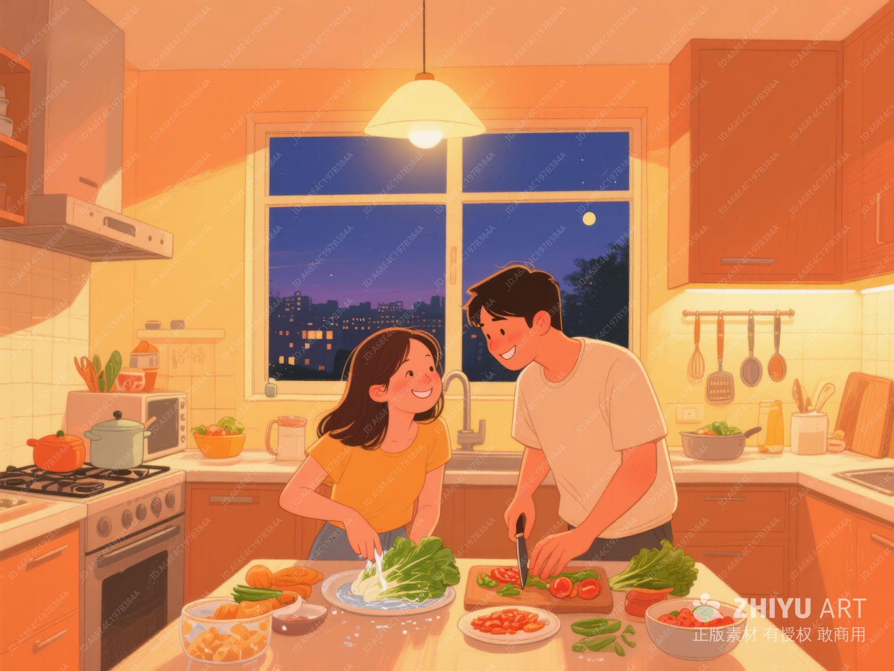 厨房温馨时刻:情侣共度晚餐准备时光 33