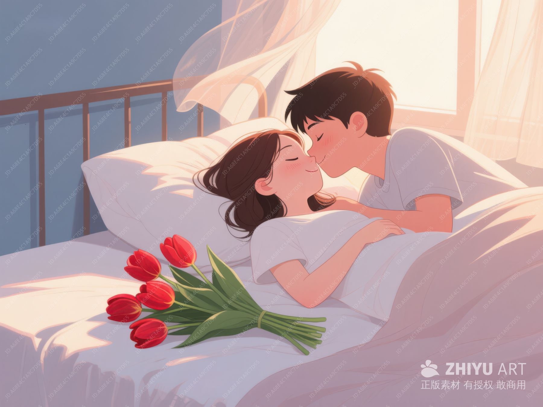 温馨床边,情侣共度晨光 399