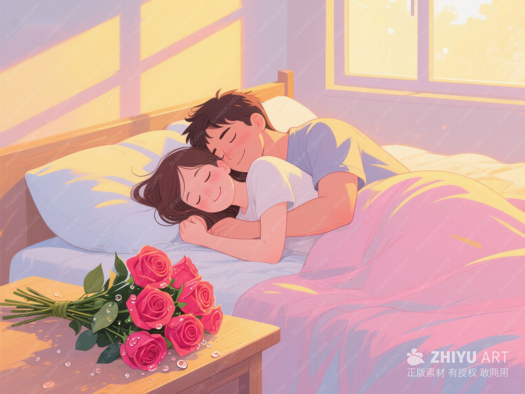 温馨床畔,玫瑰相伴的甜蜜时刻 733
