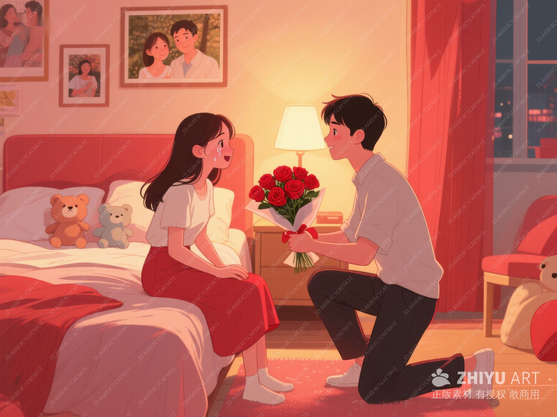 浪漫求婚场景,男子单膝跪地献戒指 413
