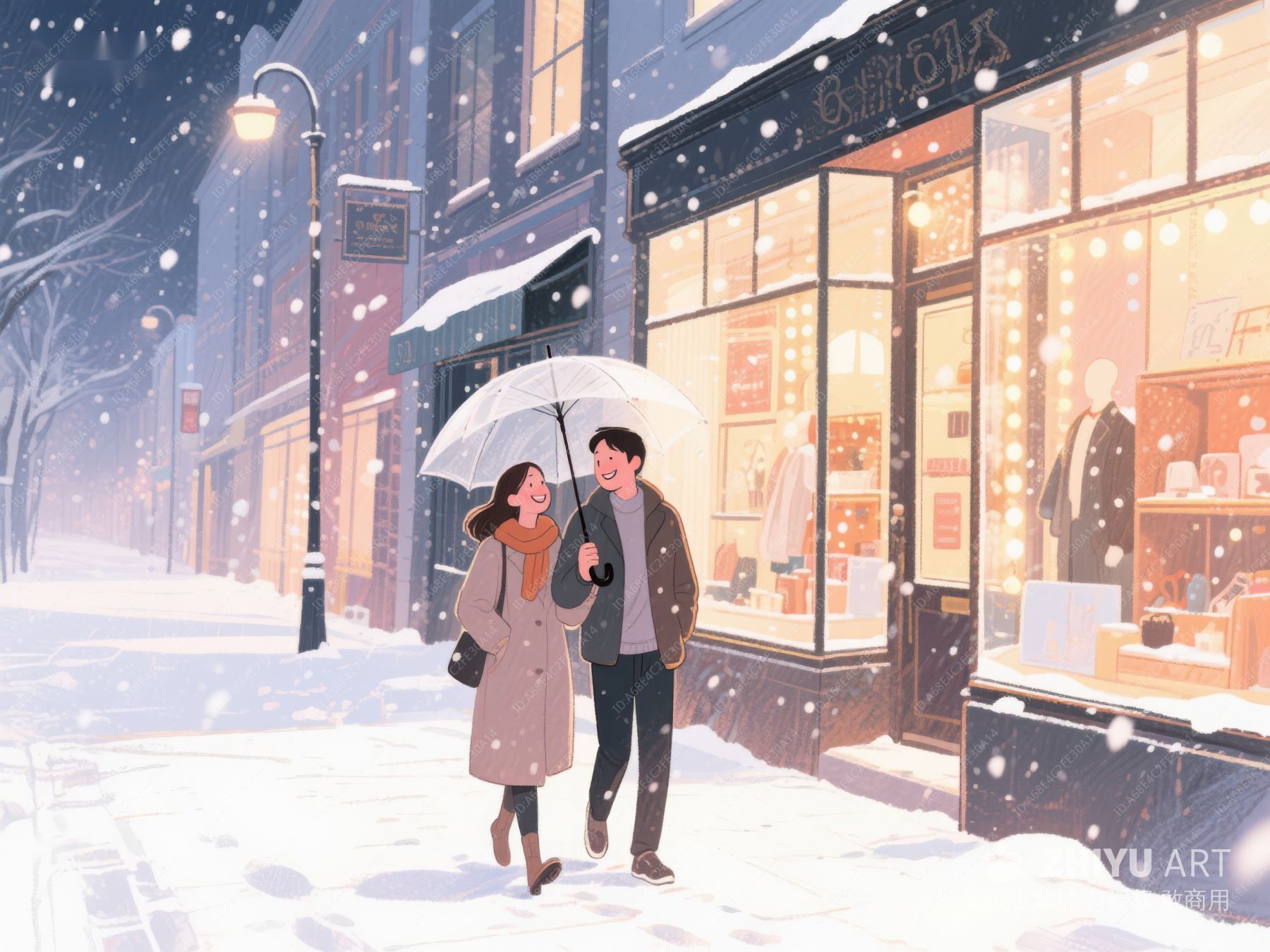 雪夜漫步的温馨情侣 914