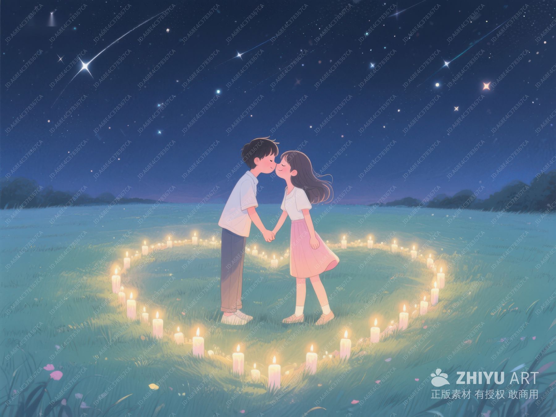 夜空下情侣共舞,烛光心形环绕 1051