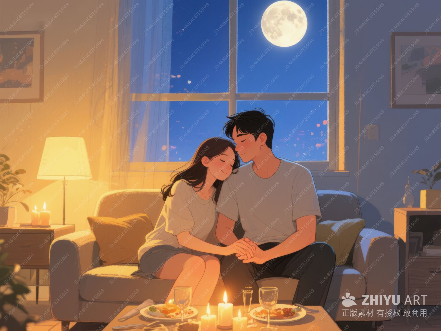 月下温馨时刻:情侣共度浪漫夜晚 1225
