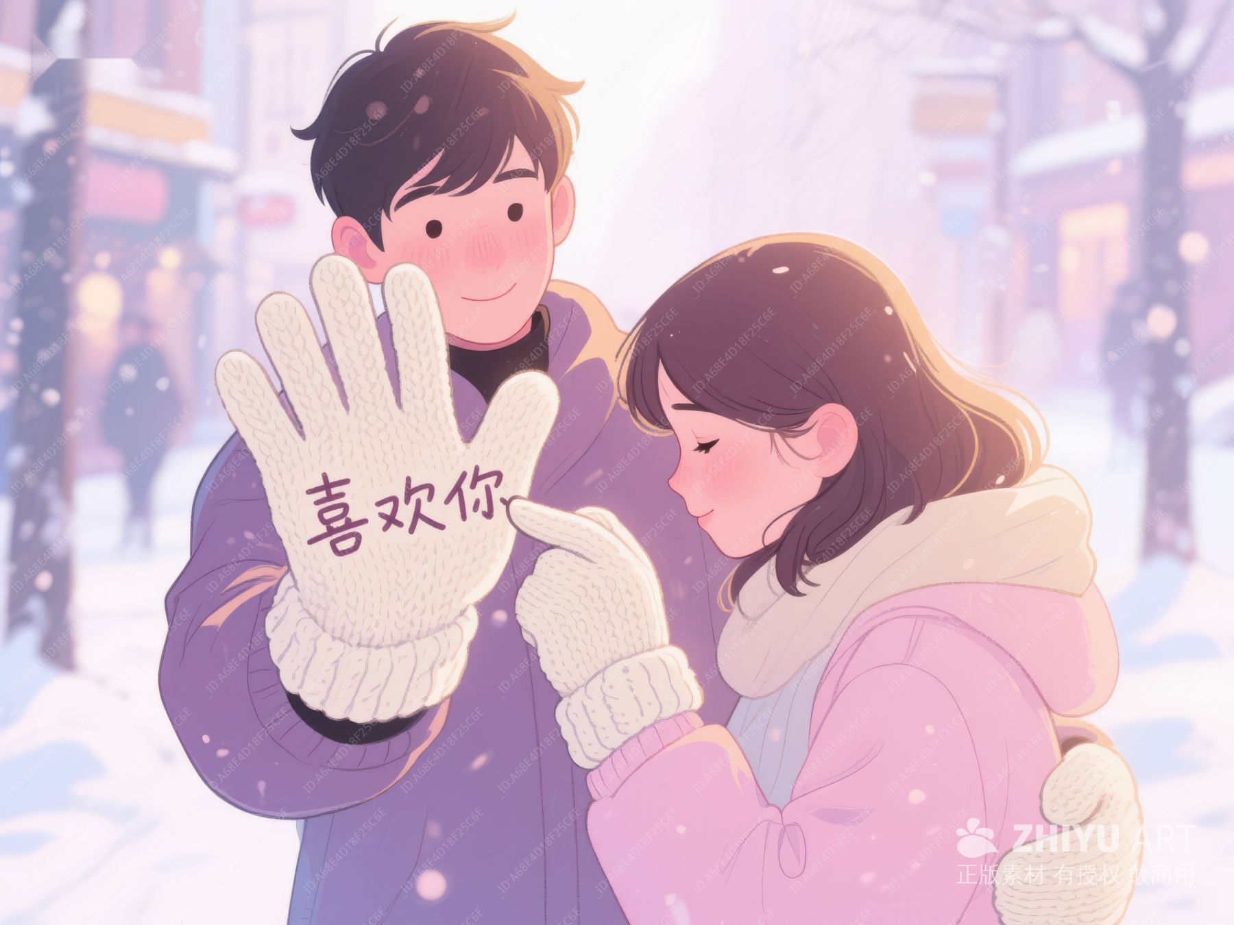 冬日雪景中的温馨情侣 96