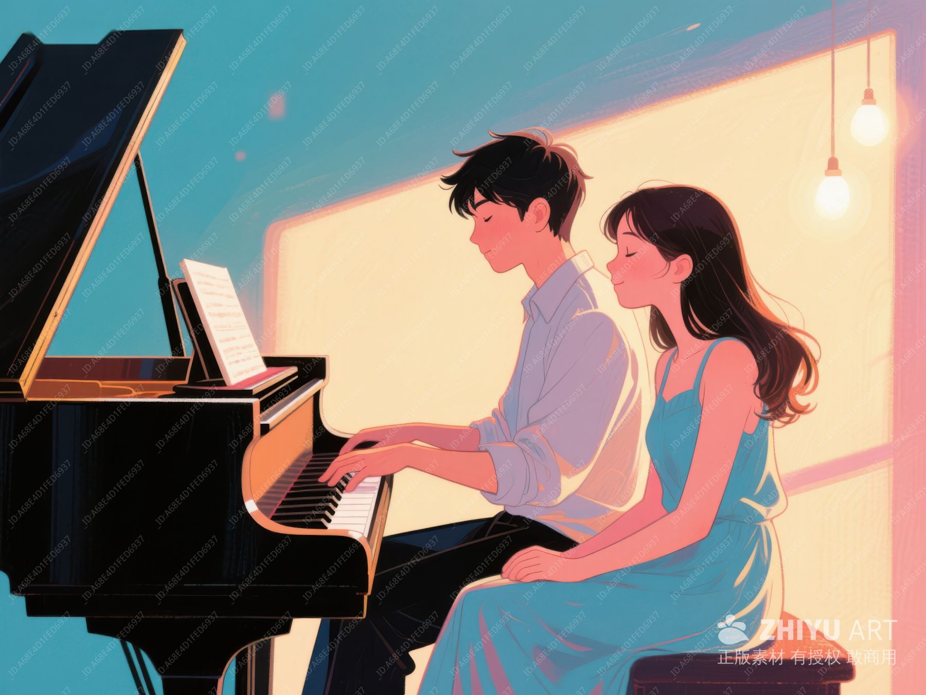 温馨室内,钢琴旁的二人时光 756