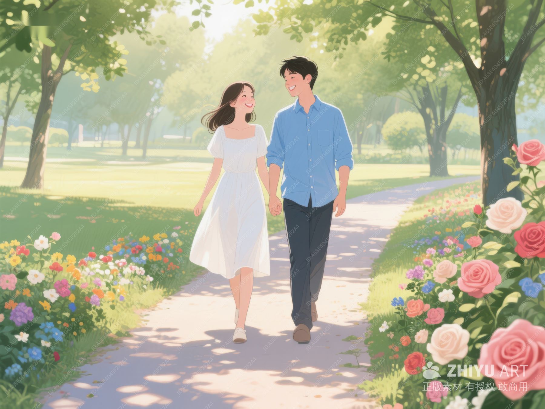 情侣漫步花径,春日浪漫时光 515