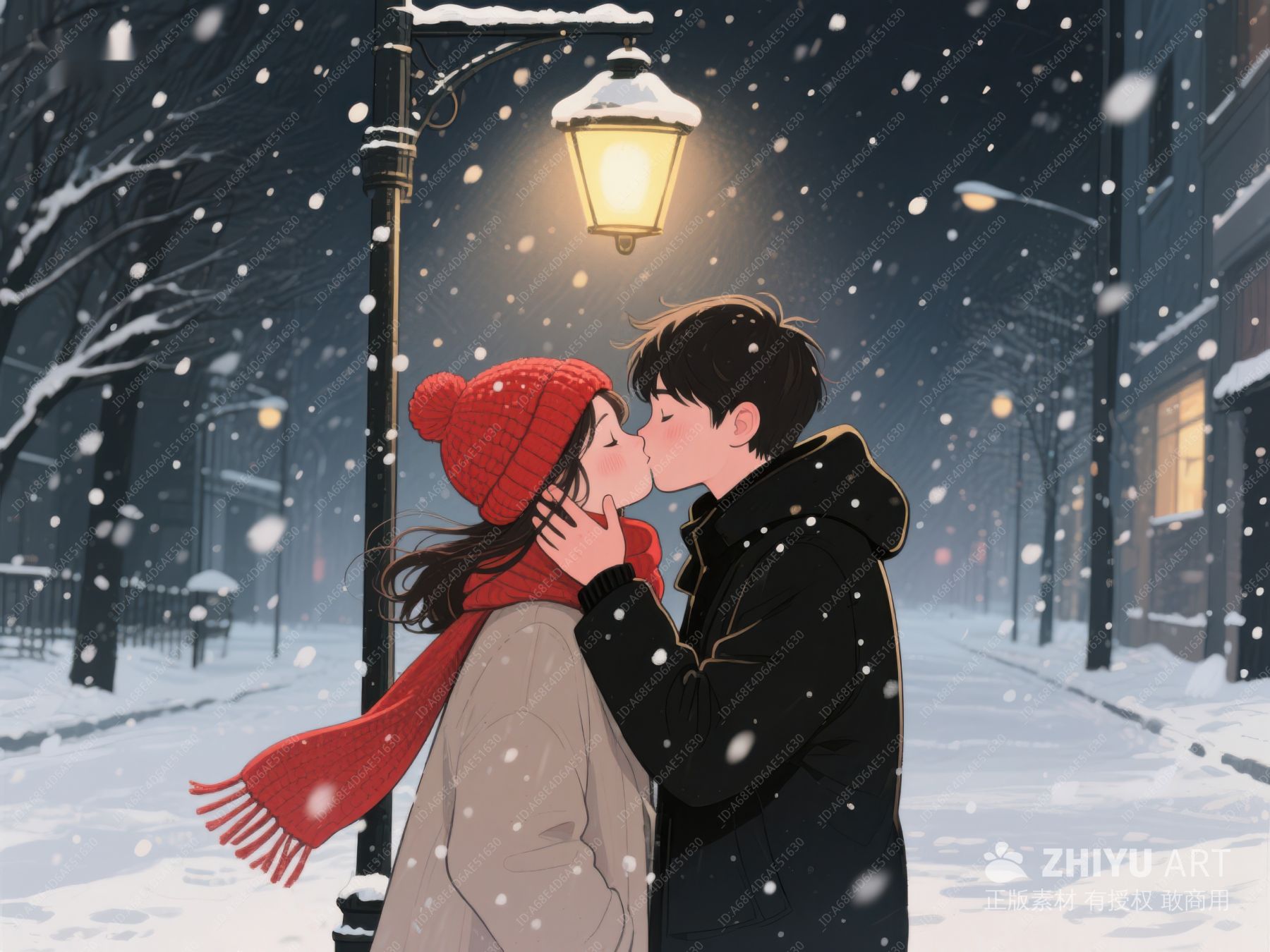 雪夜街灯下的浪漫亲吻 900