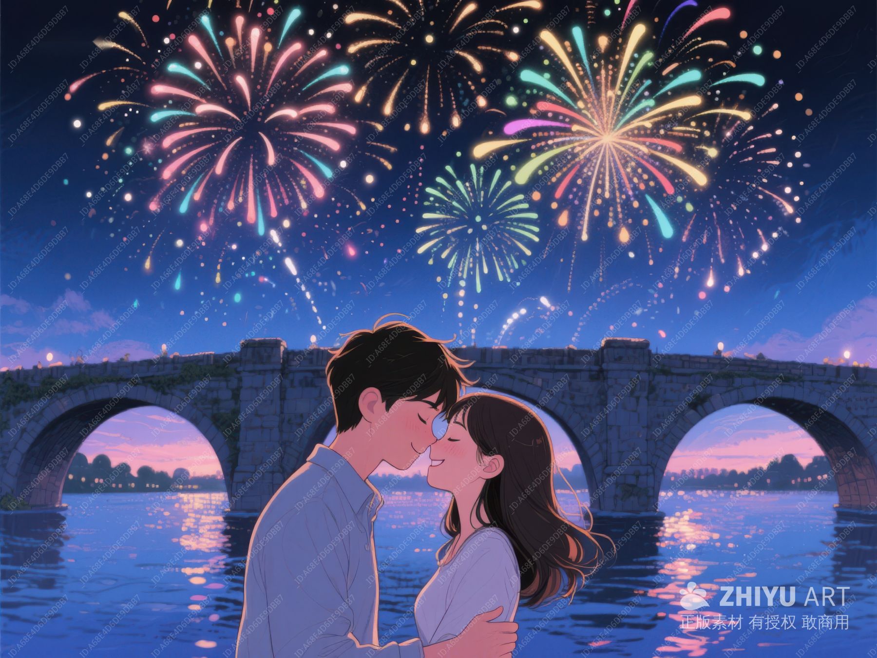 情侣阳台赏烟花,浪漫夜景共此时 243