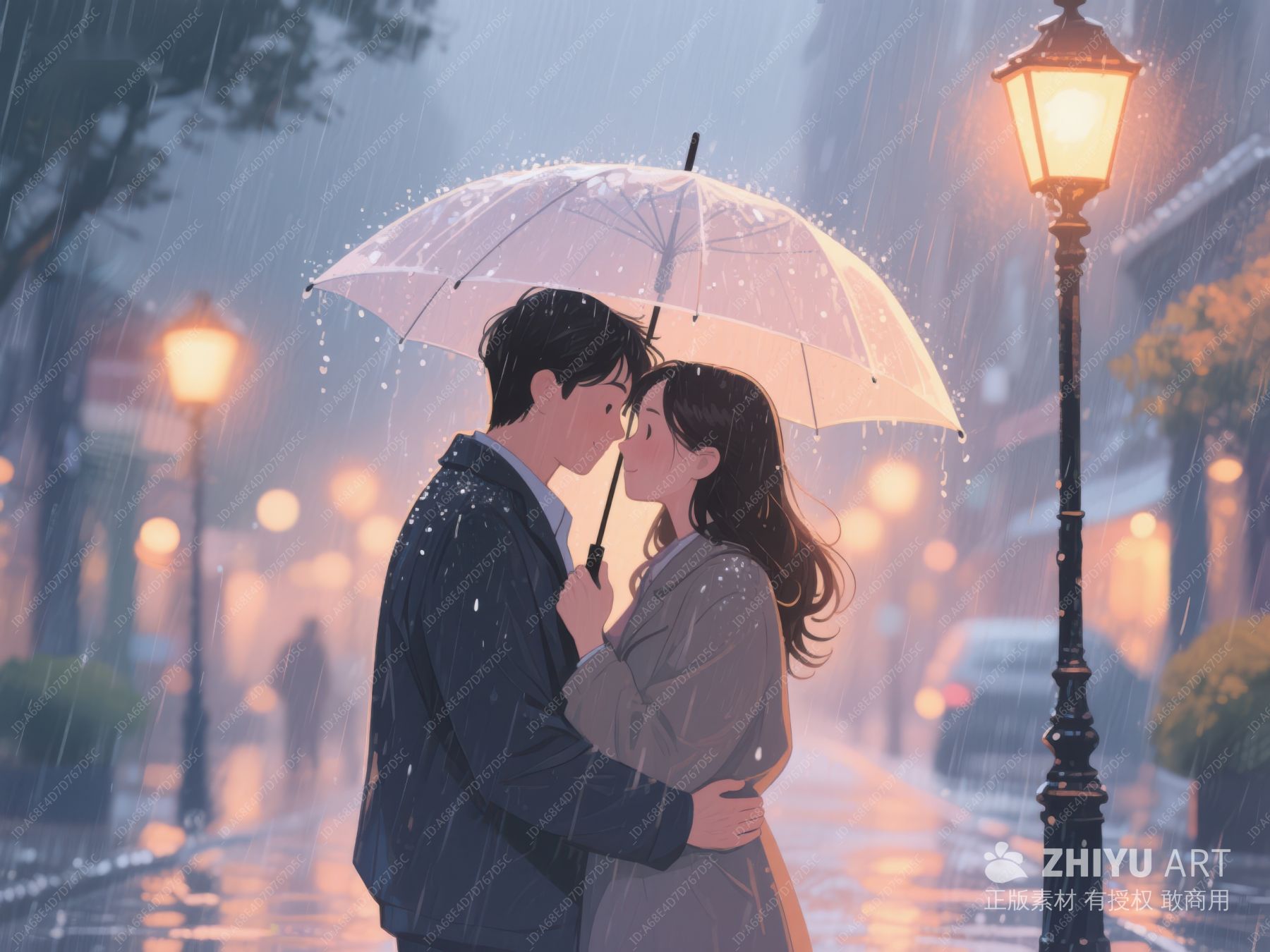 雨中情侣相拥,伞下温情时刻 1097