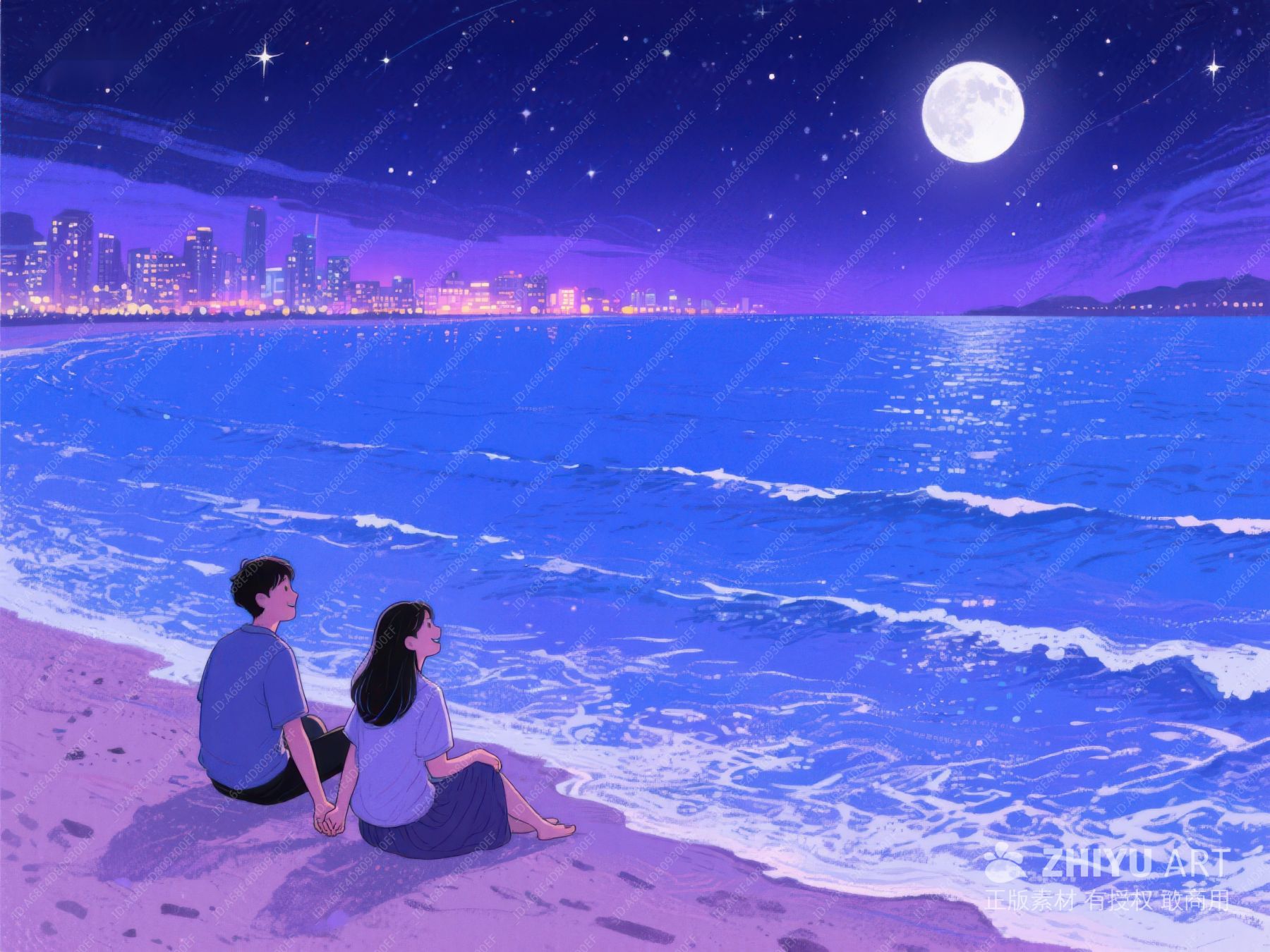 月下海滩情侣对望 1208