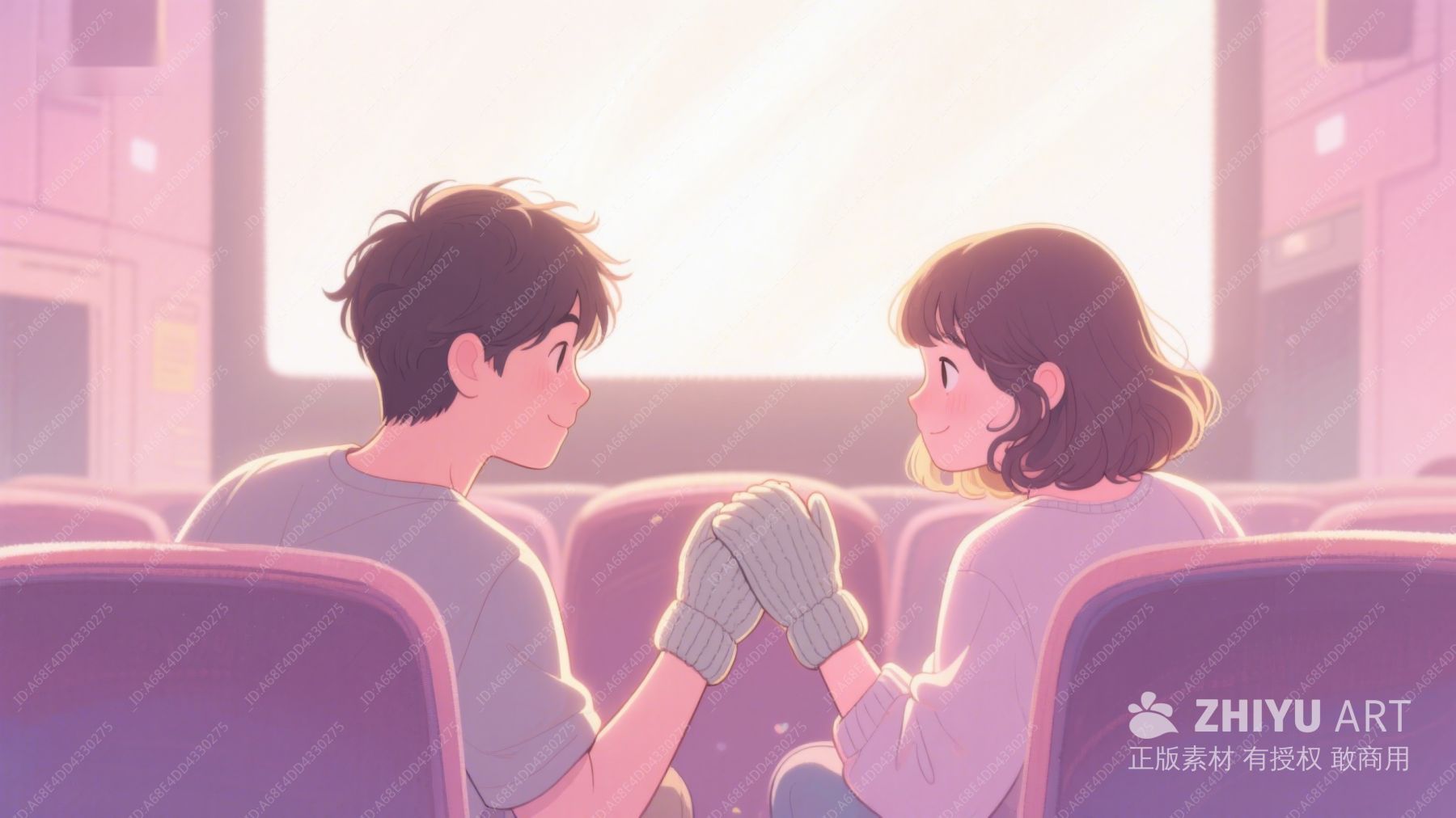 情侣在电影院中手牵手微笑 274