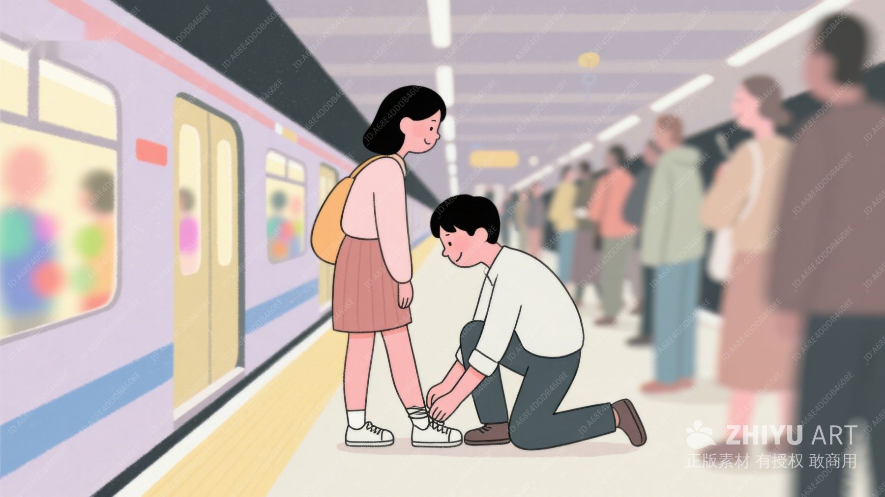 地铁站内,男子为女子系鞋带 112