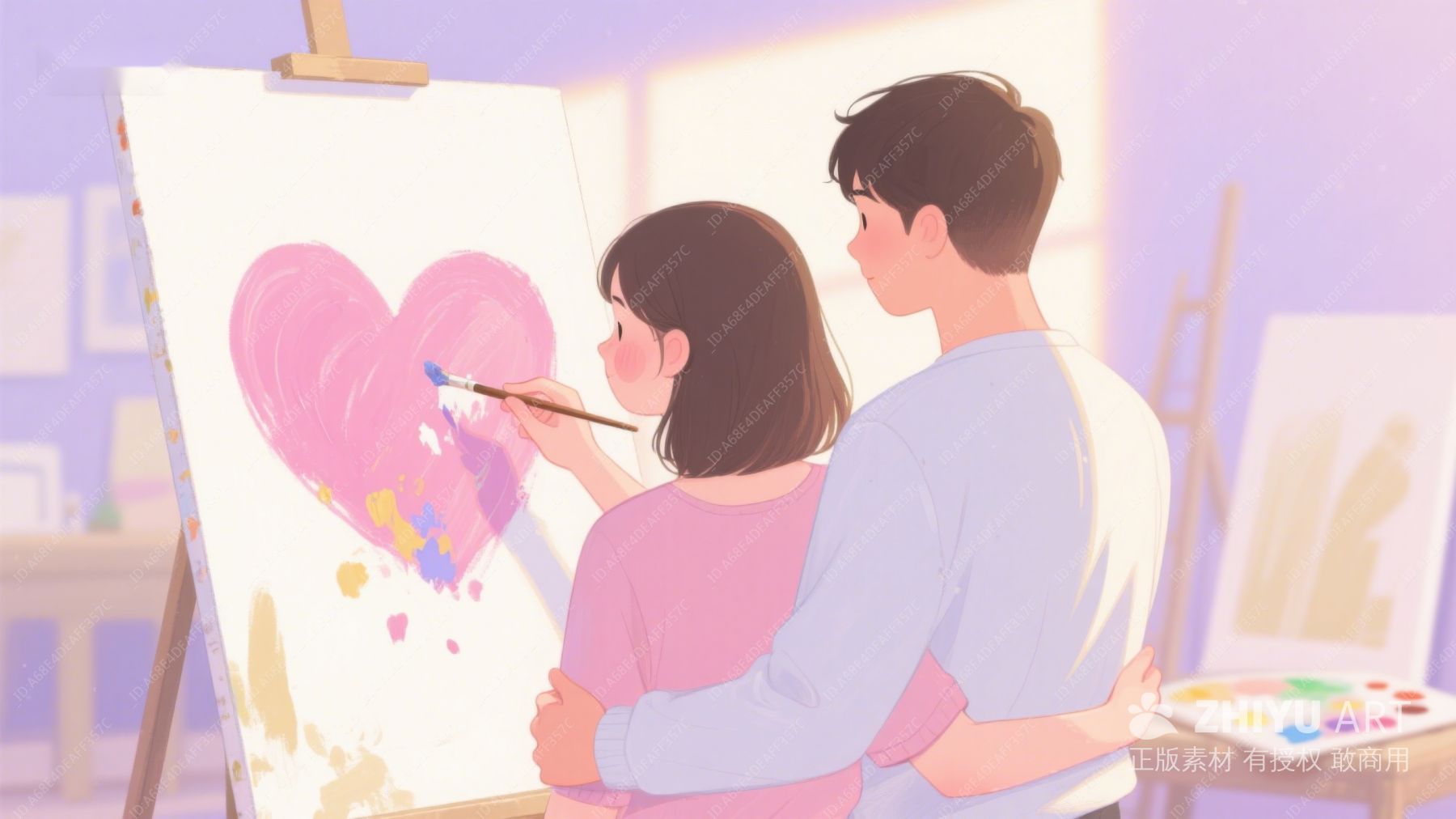 情侣共同创作画作,温馨场景 256