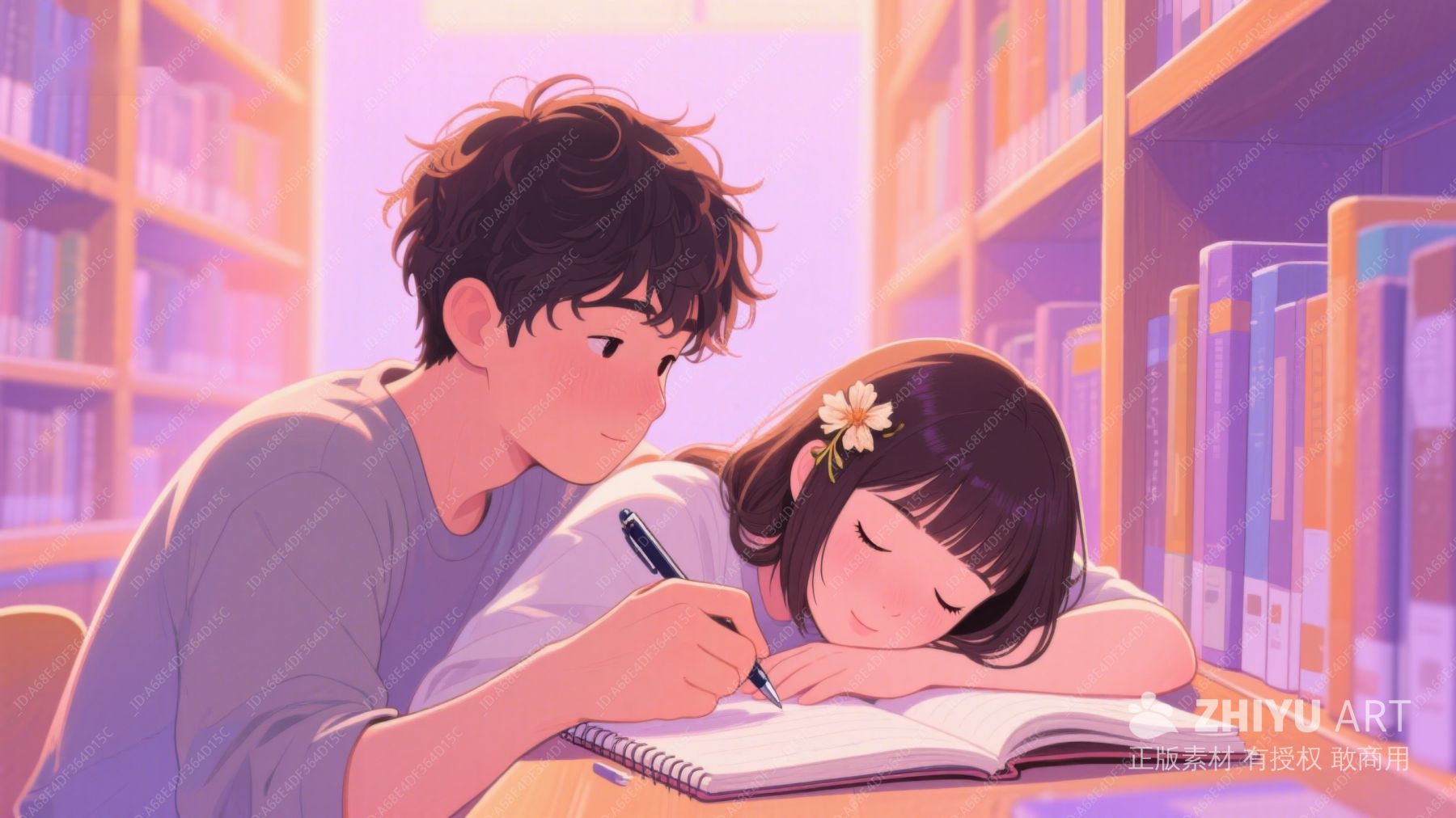 图书馆中温馨共读的两人 323