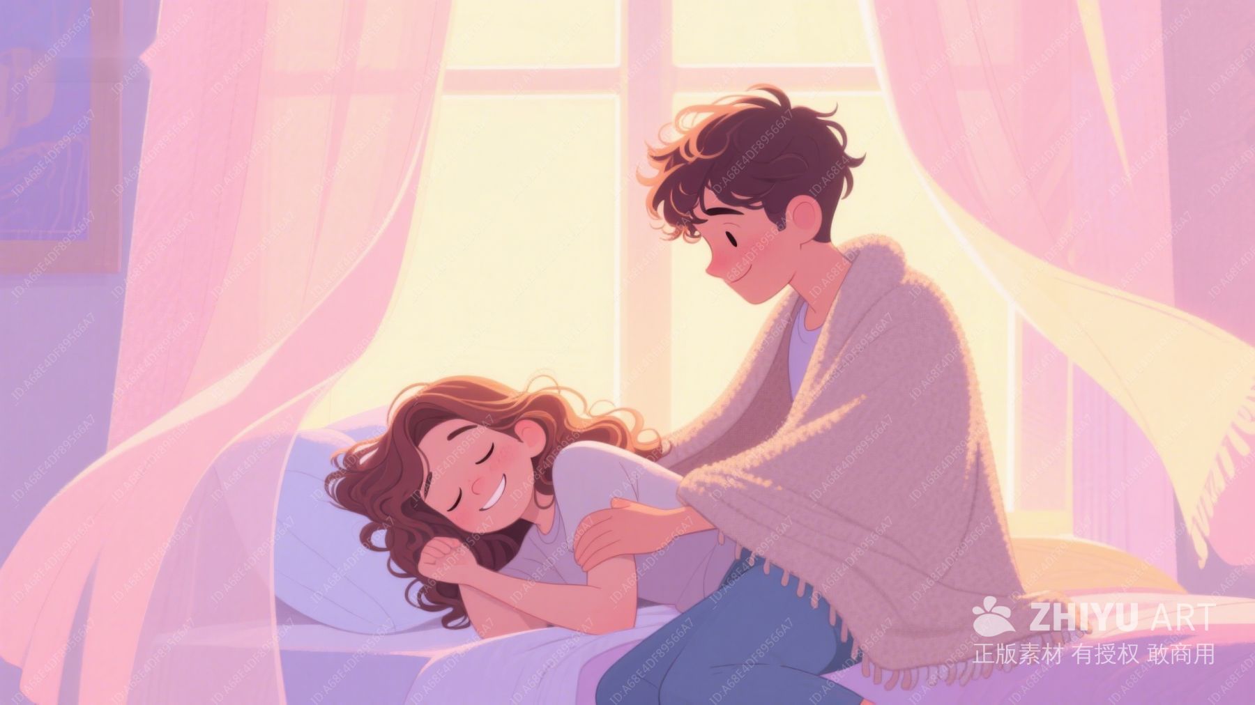 温馨床边,情侣共度晨光 399
