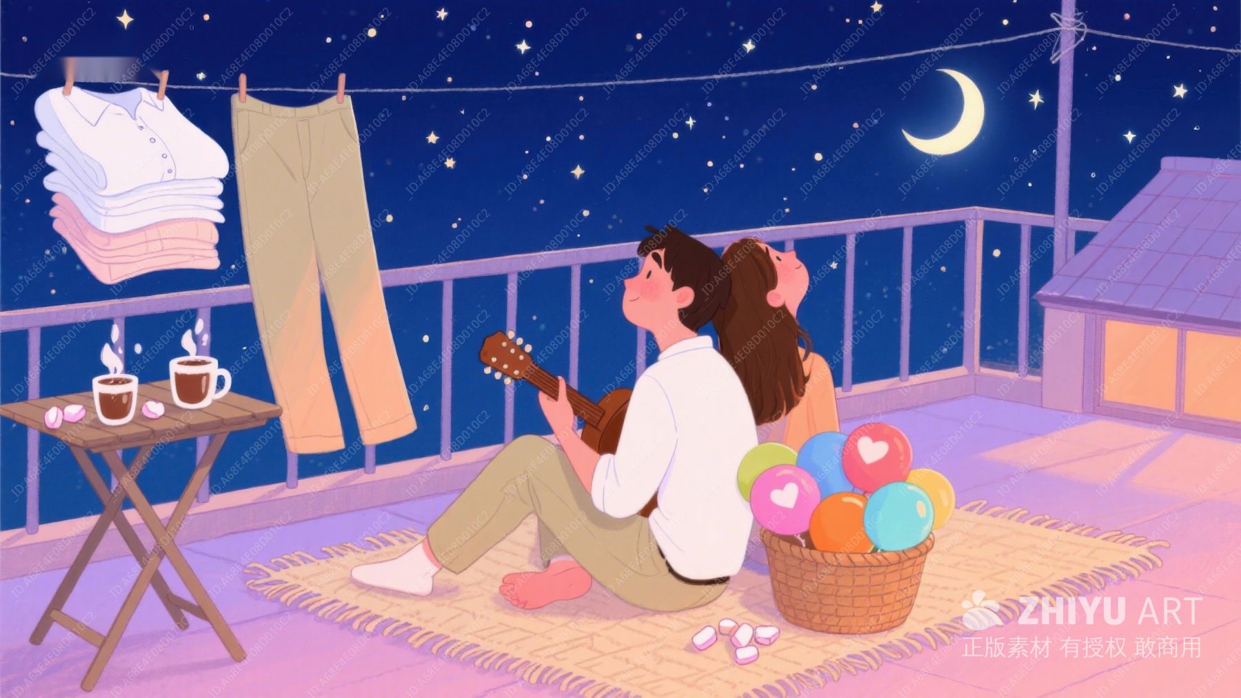 夜景阳台上的吉他与气球 536
