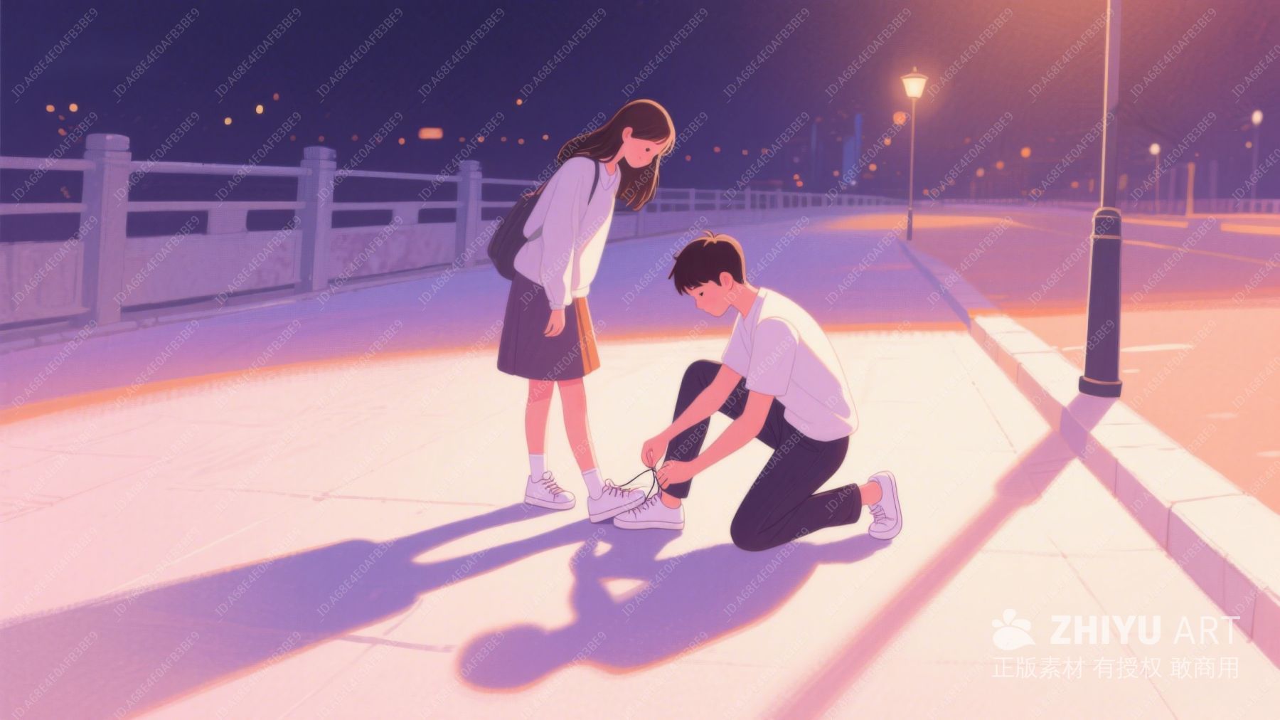 夜色下,男孩为女孩系鞋带 585