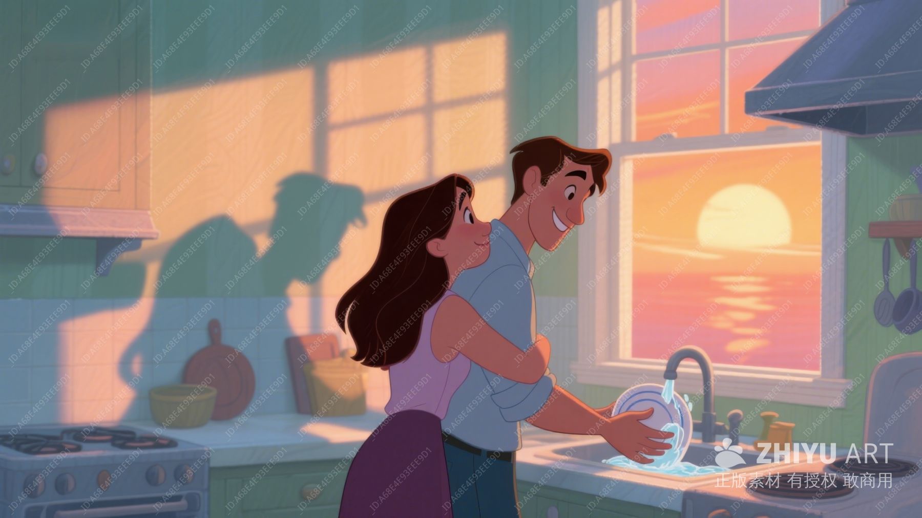 温馨厨房夜景:两人共洗碗 364