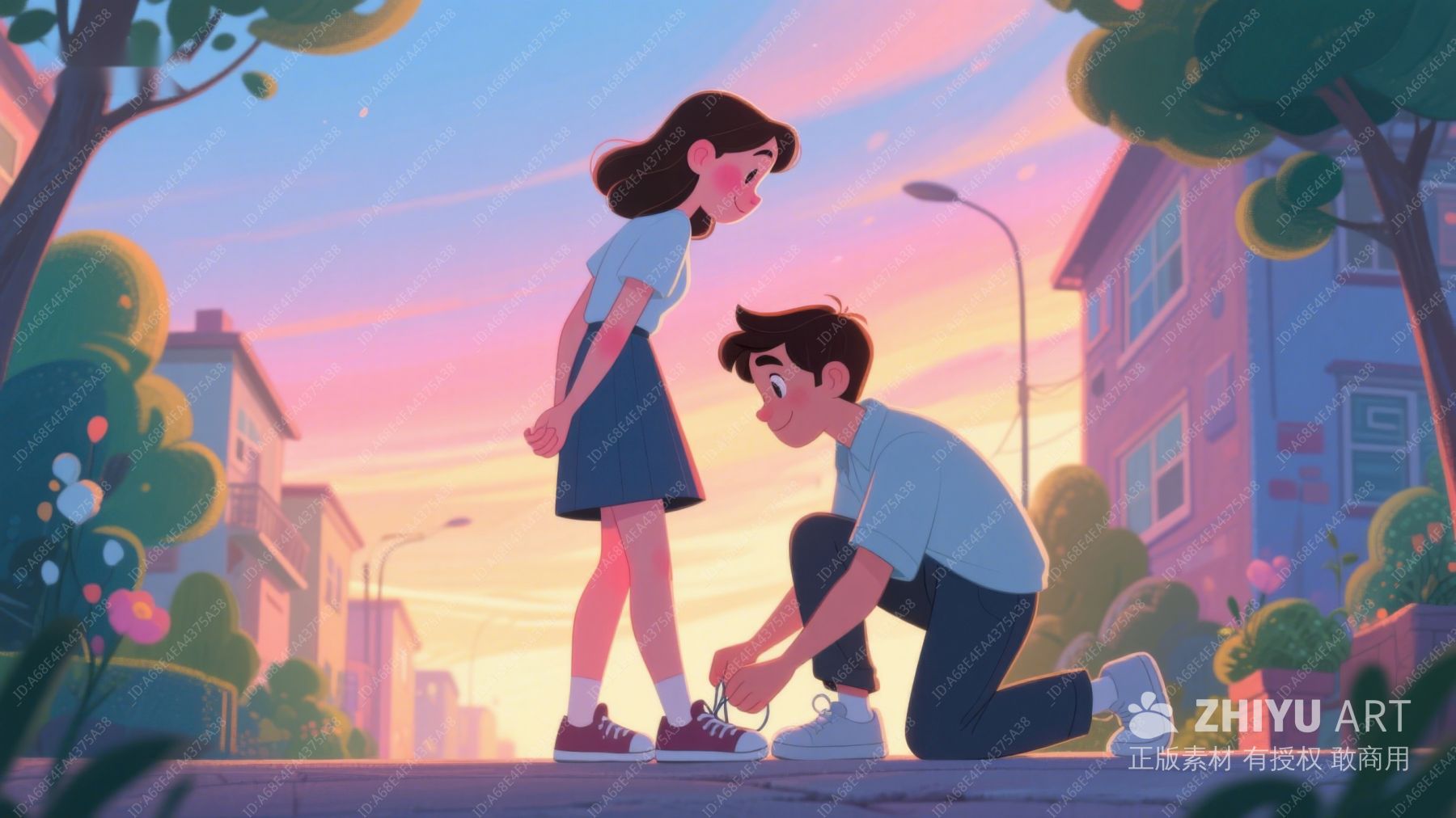 夕阳下,男孩为女孩系鞋带 520