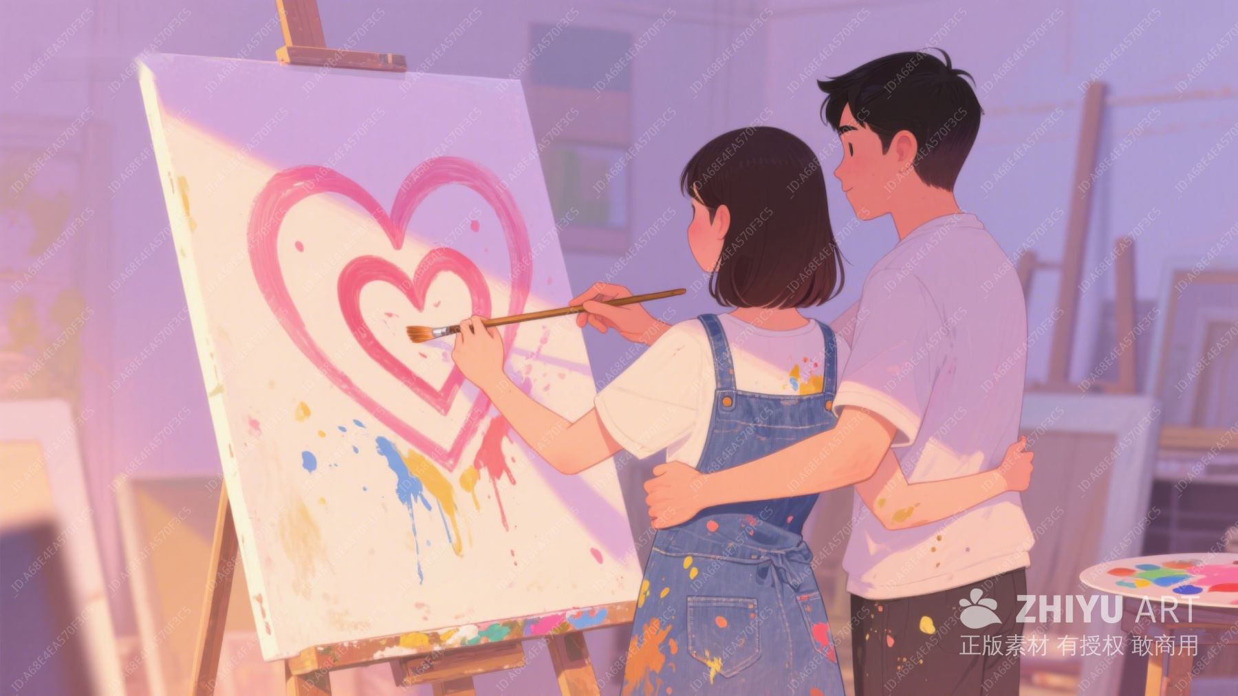 情侣共同创作画作,温馨场景 256