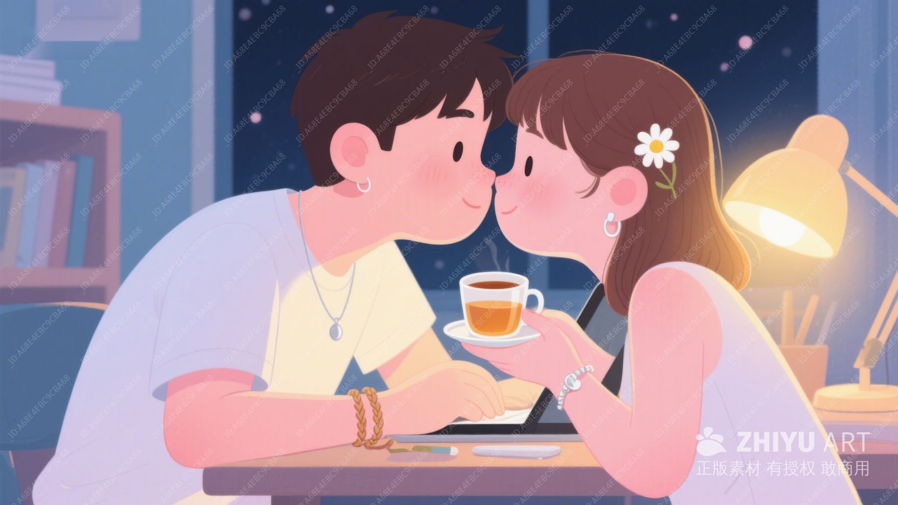 温馨夜晚,情侣共饮热茶 902