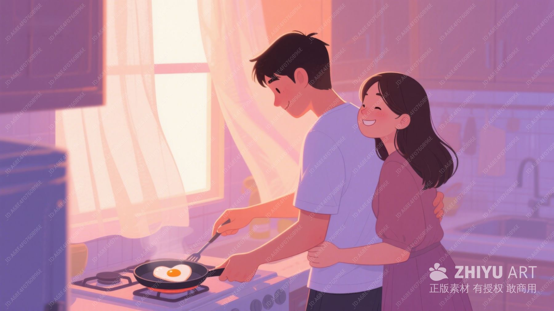 厨房温馨时刻:情侣共同烹饪早餐 59