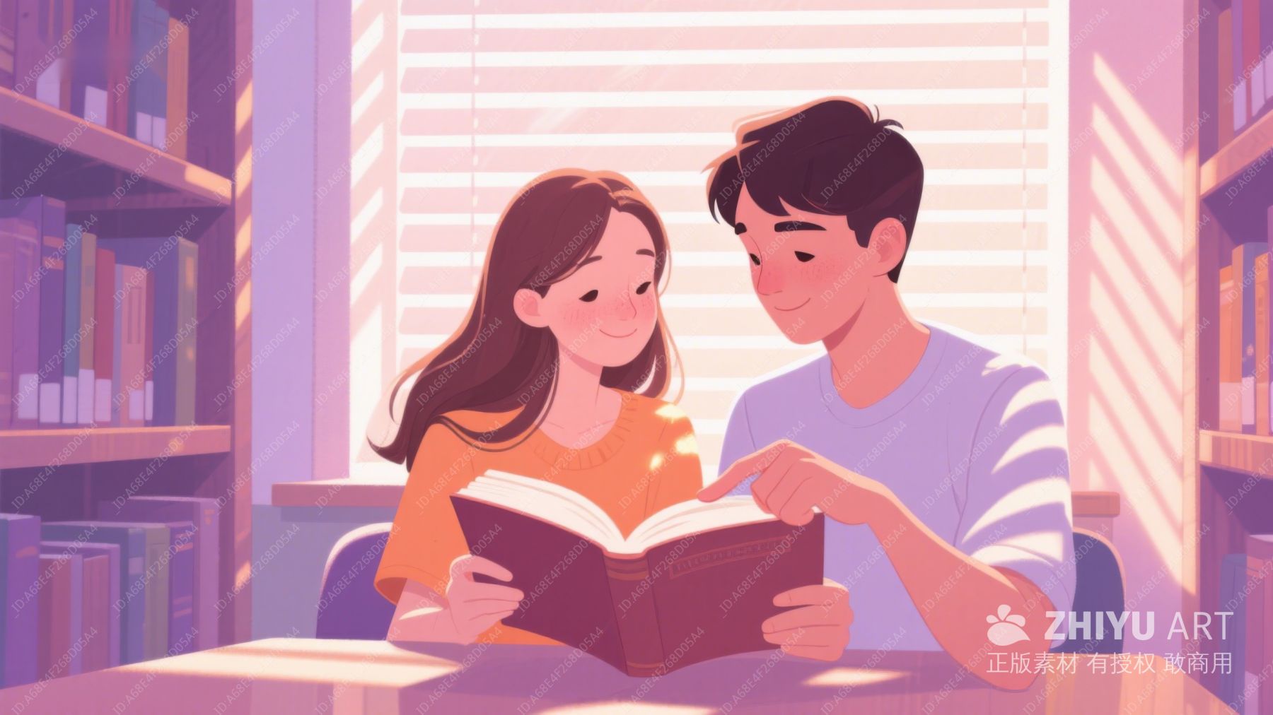 图书馆中温馨共读的两人 348