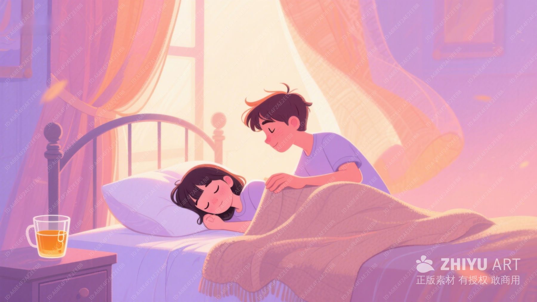 温馨晨光中,男孩轻柔为女孩盖被 331