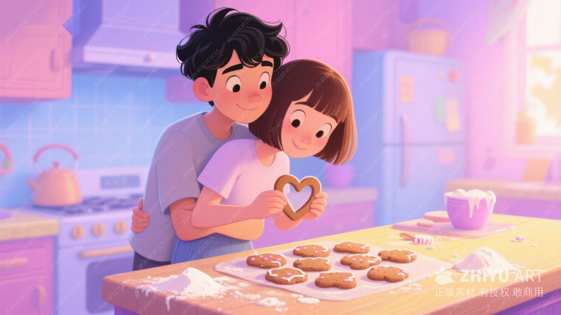 厨房温馨时刻:情侣共同制作爱心饼干 56