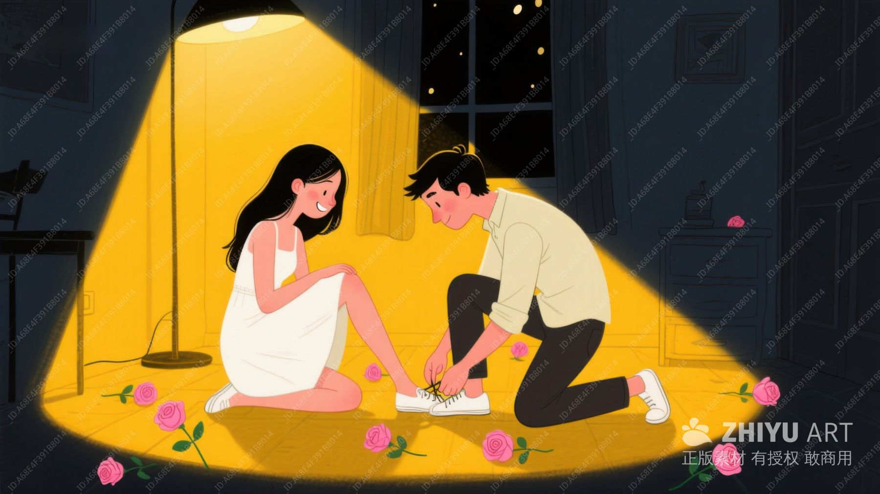 温馨卧室中的一幕:男子为女子穿鞋 852