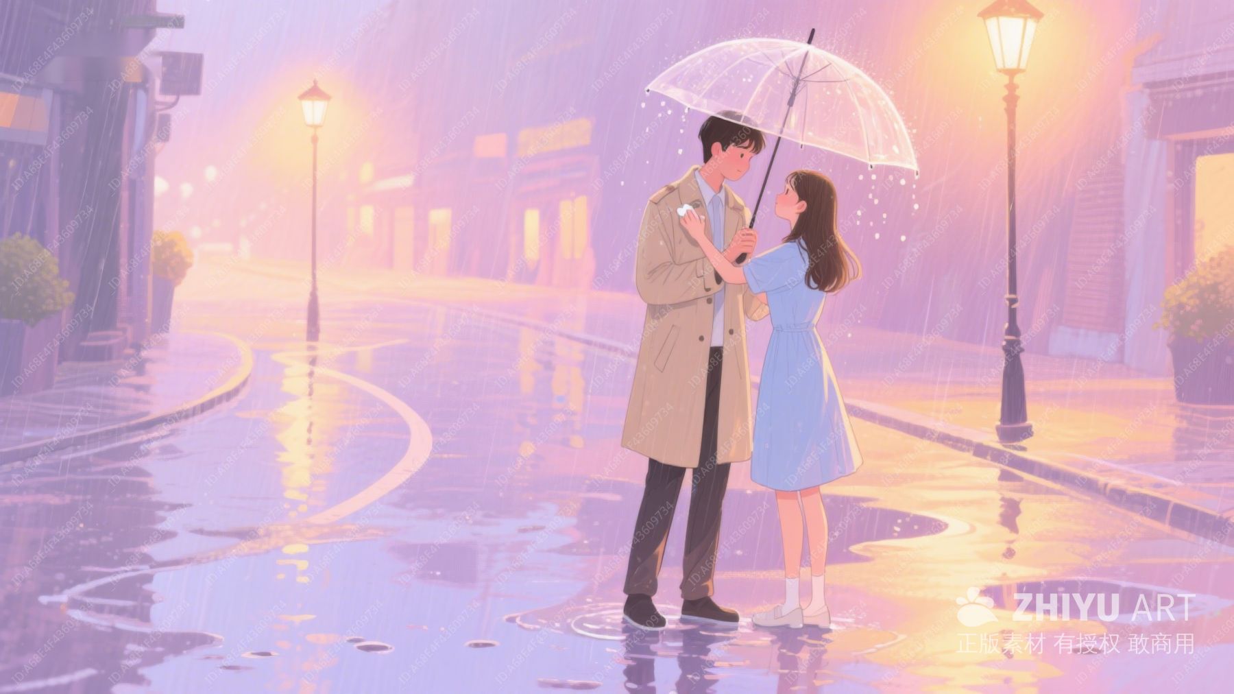 雨中情侣共撑伞,浪漫街头瞬间 1164