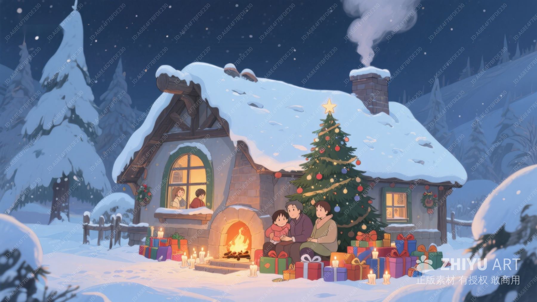 冬夜温馨小屋,家人围炉共度圣诞 80